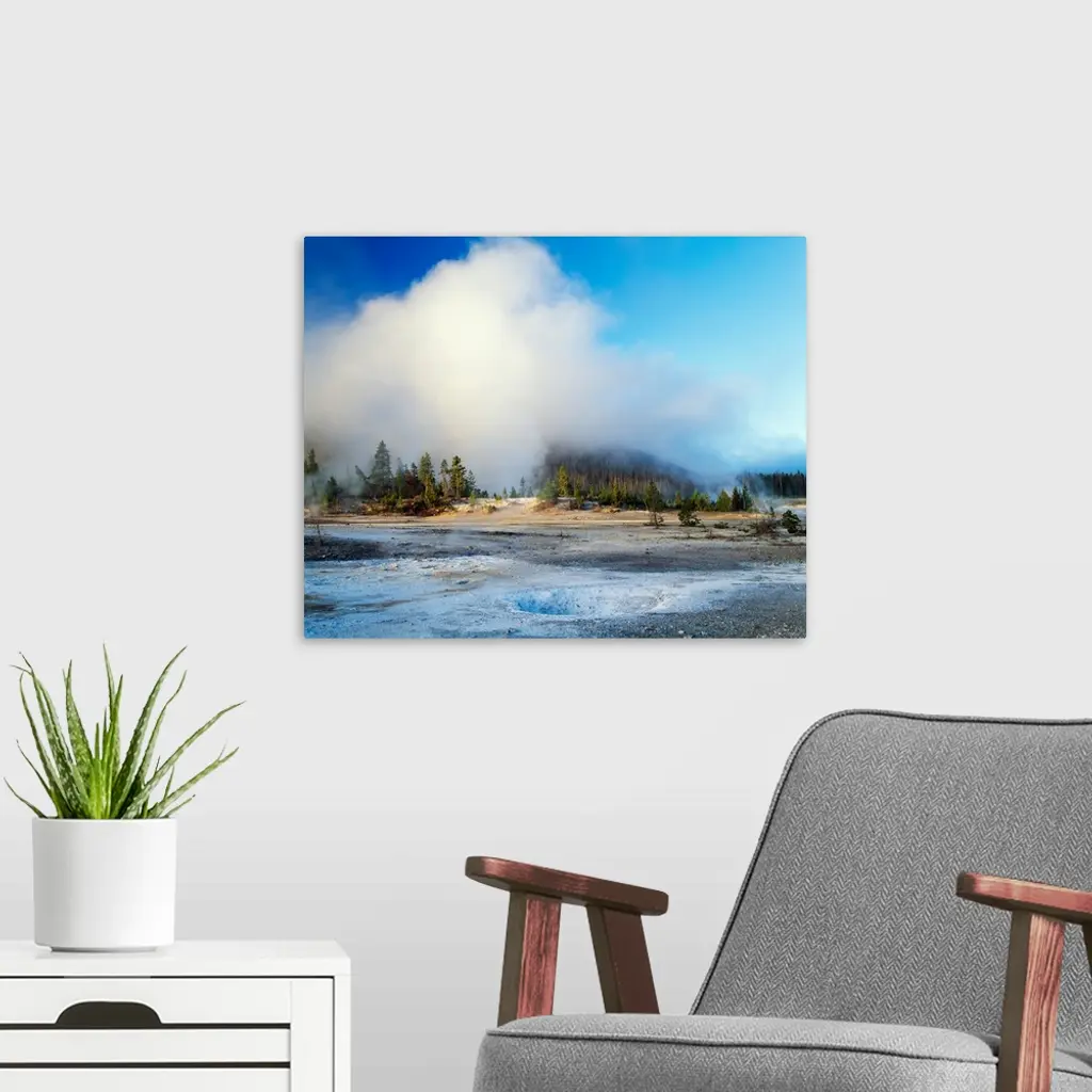 Steam cloud over Norris Geyser Basin, Yellowstone National Park, Wyoming wall art for home and office decor. Discover canvas art prints, photos, mural, big canvas art and framed wall art in GreatBigCanvas.com's varied collections.