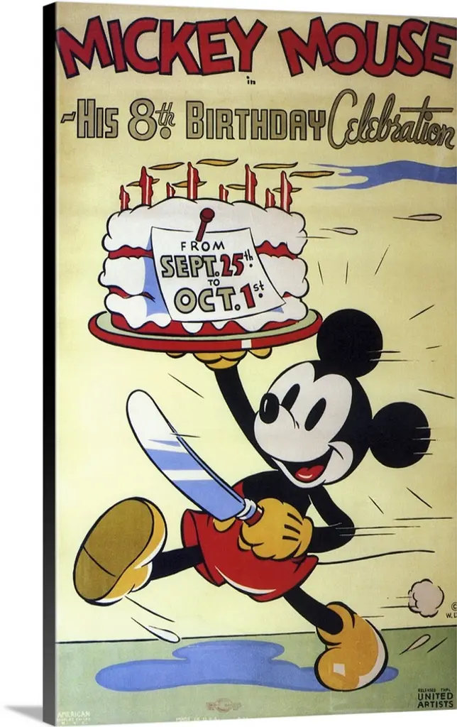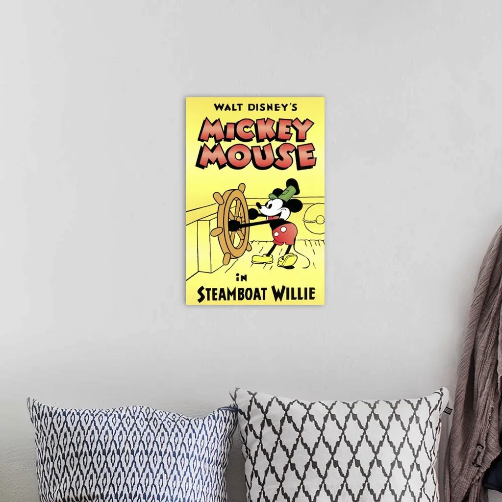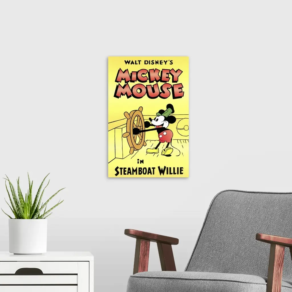 Vintage poster of the classic Mickey Mouse cartoon Steamboat Willie in full color.