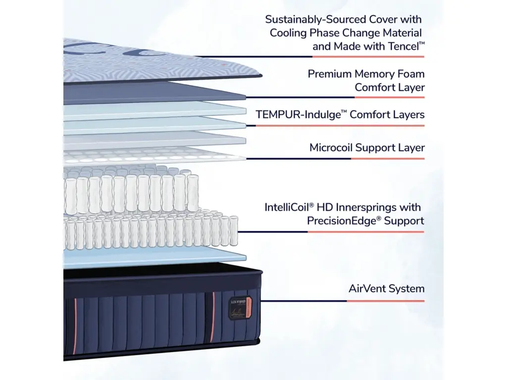 The Stearns & Foster® Lux Hybrid Elite Collection combines the responsive support of IntelliCoil® innersprings with the plush comfort of TEMPUR-Indulge™ Memory Foam for a uniquely comfortable and supportive feel. Thoughtfully crafted with breathable materials and hand-finished details, keeping you cool, supported and comfortable all night long.