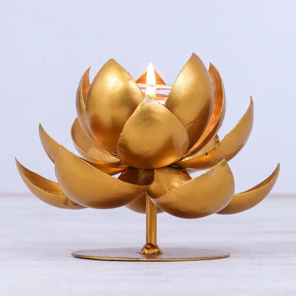 Steel And Gold Foil Lotus Tealight Holder- Lovely Lotus