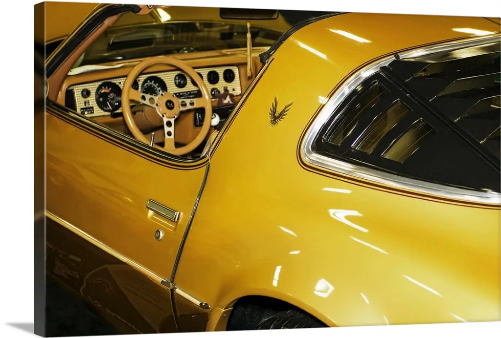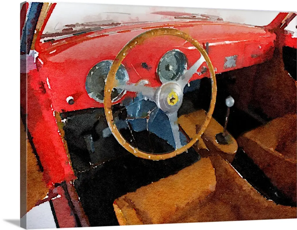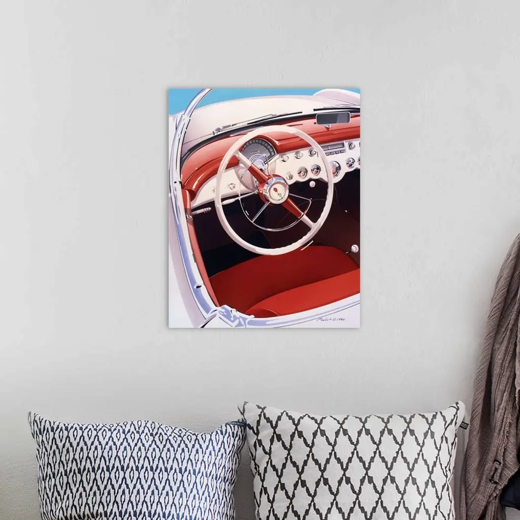 Digital fine art image takes a close up view of a classic car's steering wheel by world renowned artist Dennis Mukai.