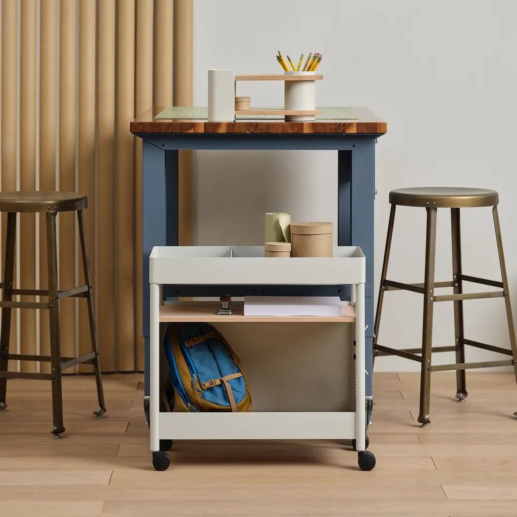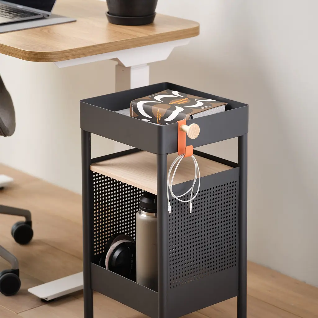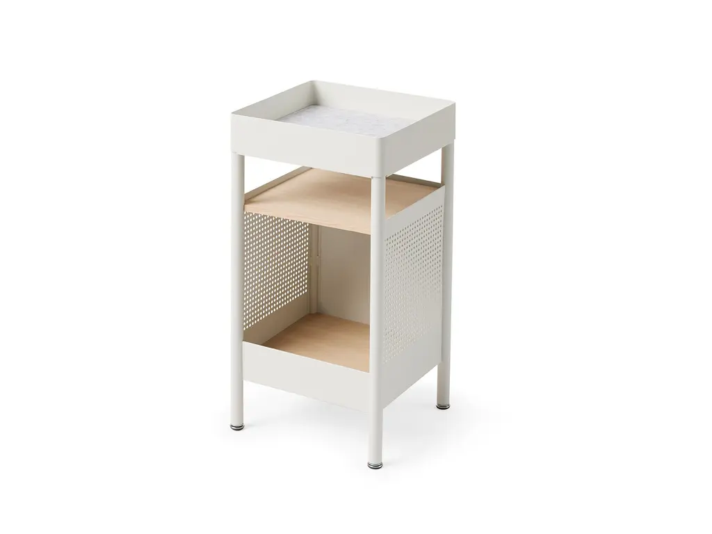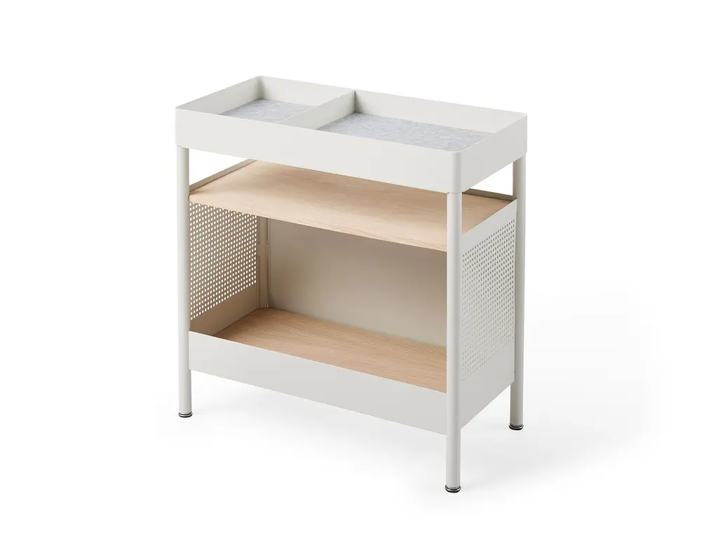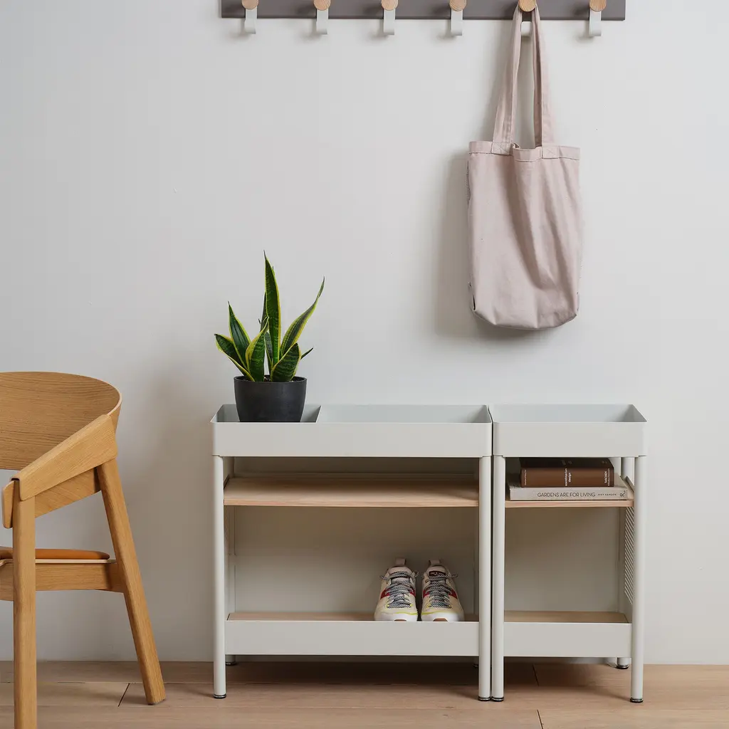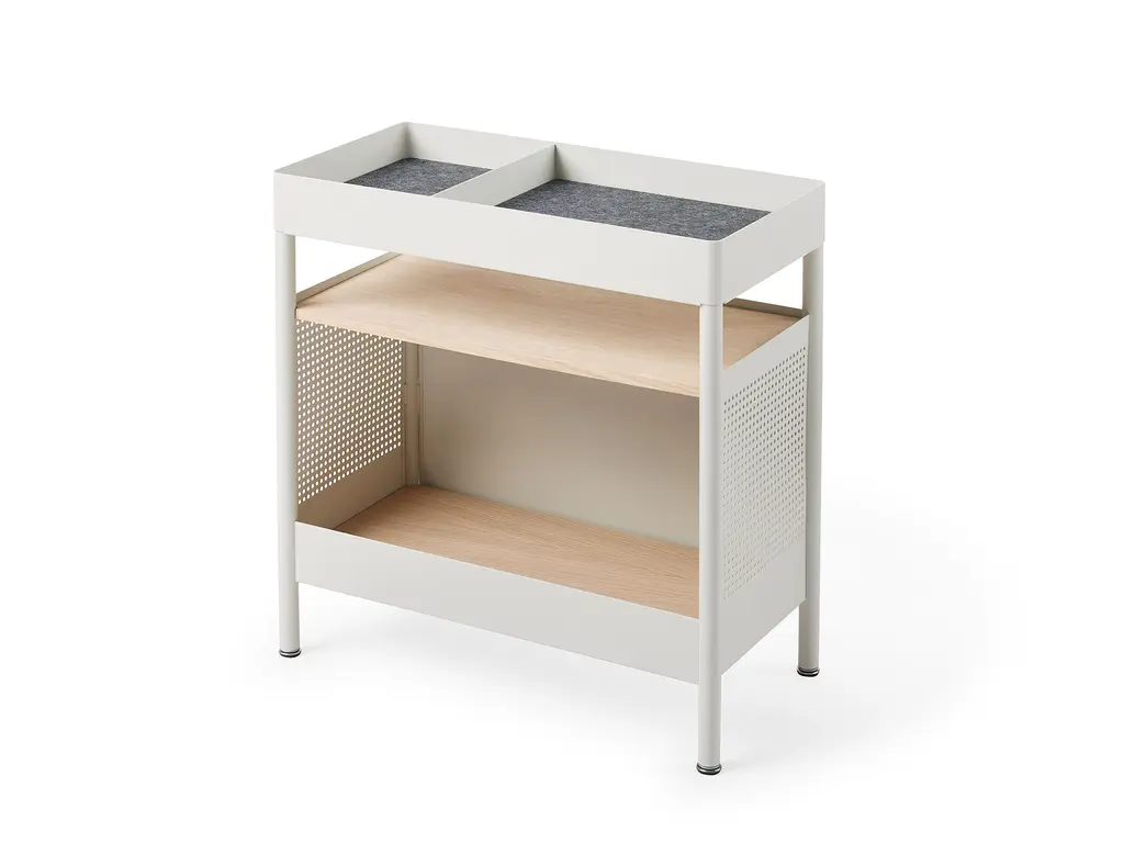 Part of our collaboration with LightCorp®. Slim profile is perfect in an office or an entryway. The modern beauty of mixed materials. Also available with sit-on casters for mobile storage around your home.