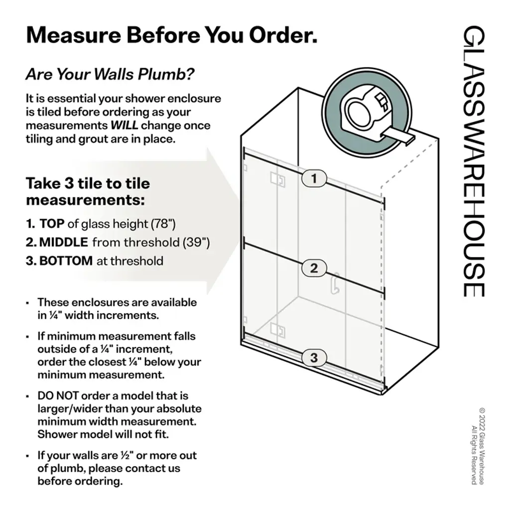 The Stellar is a beautiful, three-panel, glass-hinged shower enclosure that adds openness and an element of elegance and luxury to your bathroom. Taller than most competitor shower enclosures, each frameless 3/8" tempered glass panel comes in a standard 78" height. At the same time, the door is positioned in the center to allow easy access and space for wall accessories or a design that doesn't suit a wall-hung door. Glass is treated on both sides with EnduroShield coating, which aids in repelling water and soap residue, allowing the panels to be fully reversible. In addition, our superior quality solid brass hardware is available in a variety of color finishes to suit any bathroom. With our extensive range of frameless shower doors and panel sizes, the Stellar by Glass Warehouse is the perfect model to suit a dual shower or to span a wider shower enclosure.