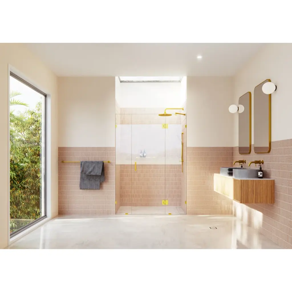 The Stellar is a beautiful, three-panel, glass-hinged shower enclosure that adds openness and an element of elegance and luxury to your bathroom. Taller than most competitor shower enclosures, each frameless 3/8" tempered glass panel comes in a standard 78" height. At the same time, the door is positioned in the center to allow easy access and space for wall accessories or a design that doesn't suit a wall-hung door. Glass is treated on both sides with EnduroShield coating, which aids in repelling water and soap residue, allowing the panels to be fully reversible. In addition, our superior quality solid brass hardware is available in a variety of color finishes to suit any bathroom. With our extensive range of frameless shower doors and panel sizes, the Stellar by Glass Warehouse is the perfect model to suit a dual shower or to span a wider shower enclosure.