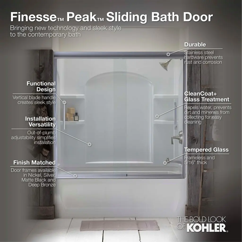 Sterling Finesse 55-1/2" High X 56-5/8" Wide Sliding Framed Tub Door - Matte Black Frame Finish With Smooth Clear Glass