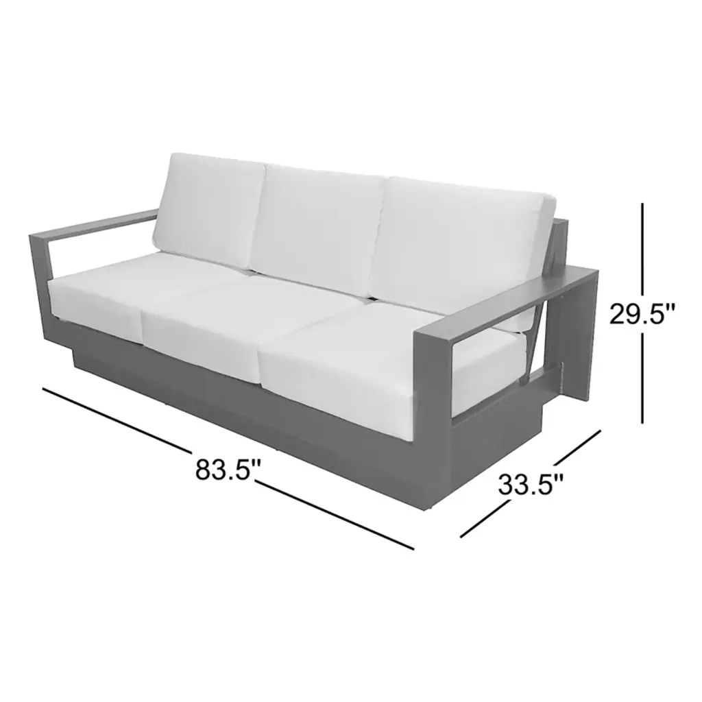 Elevate your outdoor area into a chic and welcoming retreat with our patio sofa. Engineered with durability in focus, the aluminum frames are rust-free, ensuring performance even in challenging weather conditions. The patio sofa comes with high-performance and easy care Sunbrella cushions. Whether you're hosting a gathering or relishing a quiet afternoon outdoors, this sofa delivers comfort, style, and functionality to enhance any outdoor living space. Best of all, the sofa comes fully assembled to enjoy immediately.