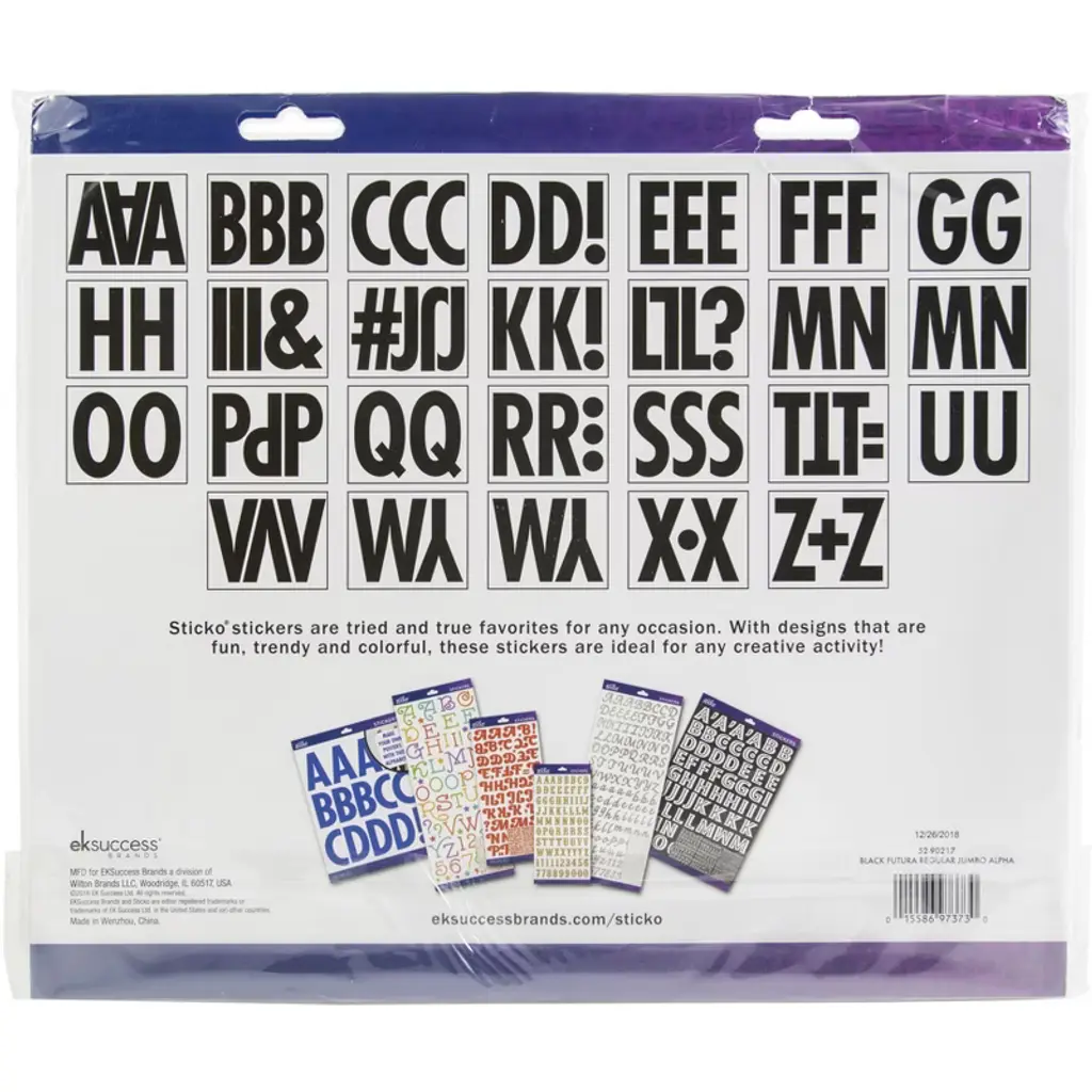 Sticko Alphabet Stickers - Futura Regular Jumbo, Black, 76pcs