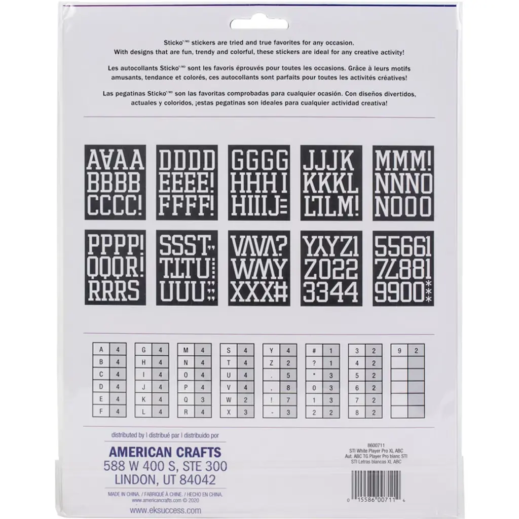 Sticko Alphabet Stickers - Pro Player Xl, White, 148pcs