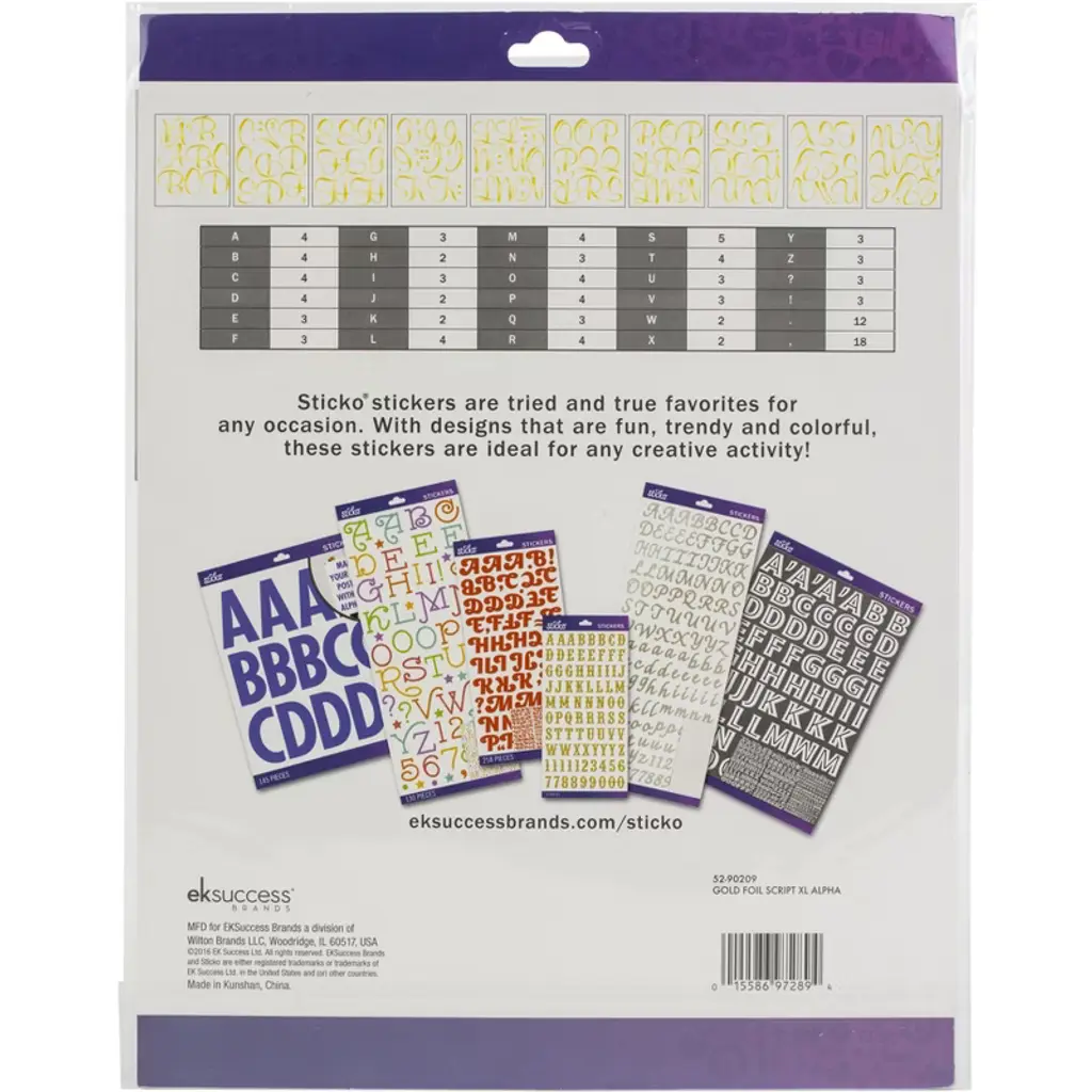 Sticko Alphabet Stickers - Script Extra Large, Gold Foil, 121pcs