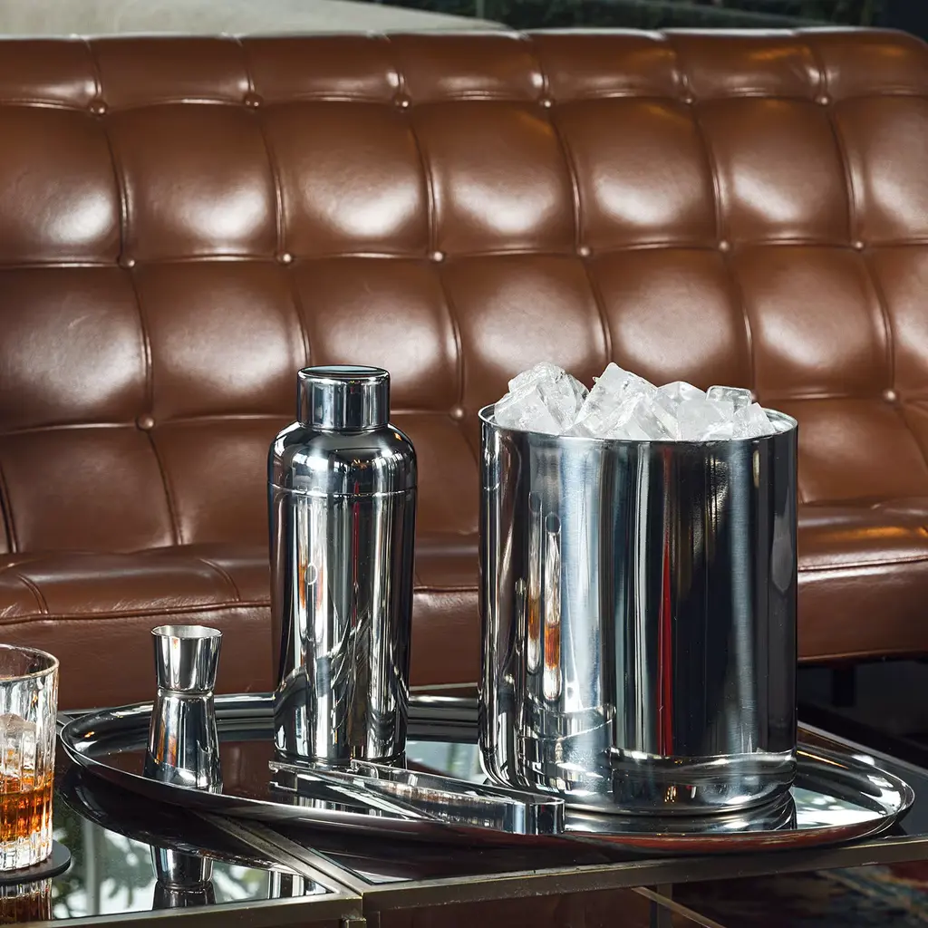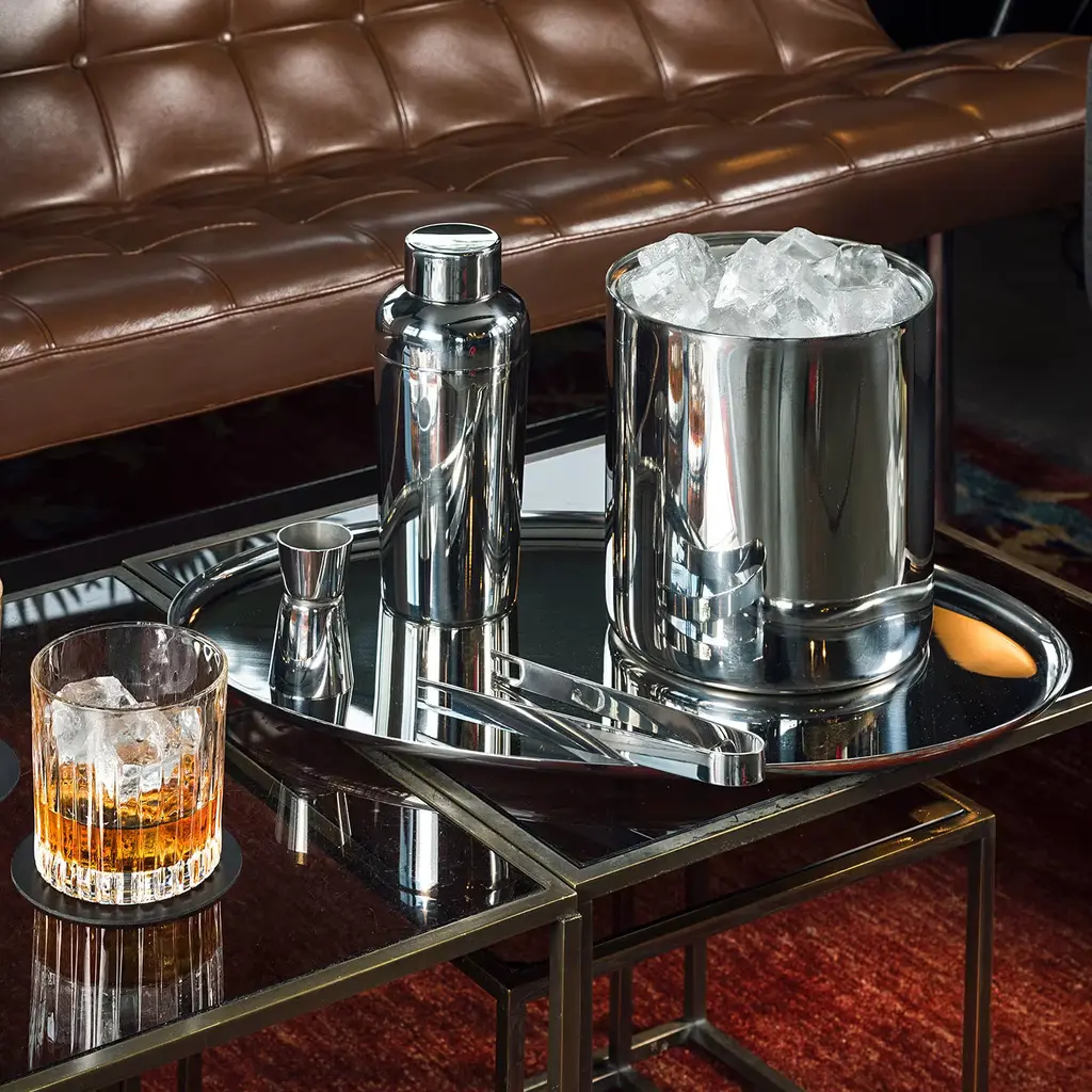 This incredible set is composed of an insulated ice cooler with its tongs. Entirely made of stainless steel, this piece can be customized with engravings. Other available colors include gold, black gold, champagne, bronze, rainbow. Please ask Concierge for details.