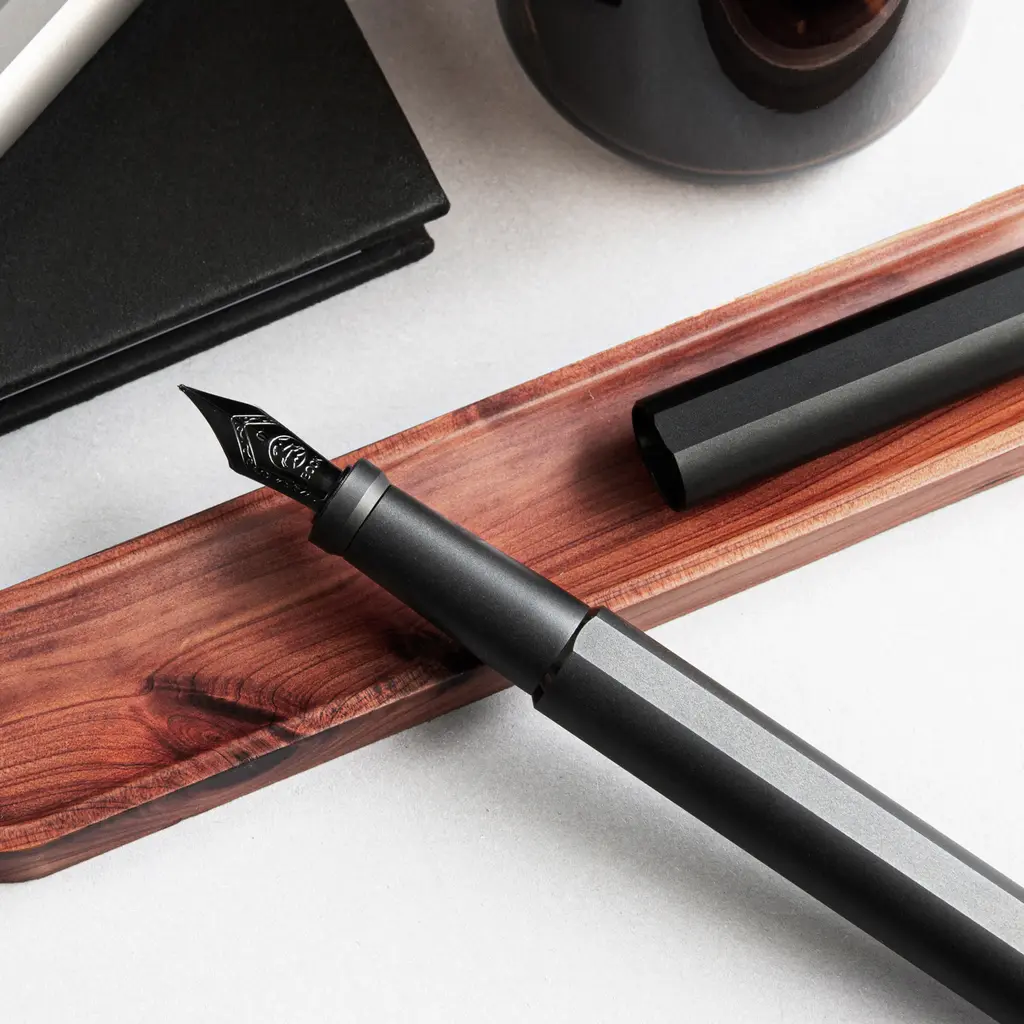 Write smoothly and in complete comfort with the innovative Stilform Ink fountain pen. This award-winning pen is both stylish and durable. It features an all-metal build with high-grade titanium parts and no plastic or glue. A cutting-edge magnetic mechanism that uses powerful N52 magnets keeps the pen closed but allows the user to bounce off the cap with a simple twist. The magnets also align the flat sides of the pen perfectly. Thanks to the magnetic closure/opening system, the Stilform Ink fountain pen doesn’t have uncomfortable threads. In addition, the pen is lightweight and perfectly balanced to make writing a joy, even for prolonged periods of time. Made from high-grade titanium, this fountain pen comes with a matte gray or a dark DLC finish.