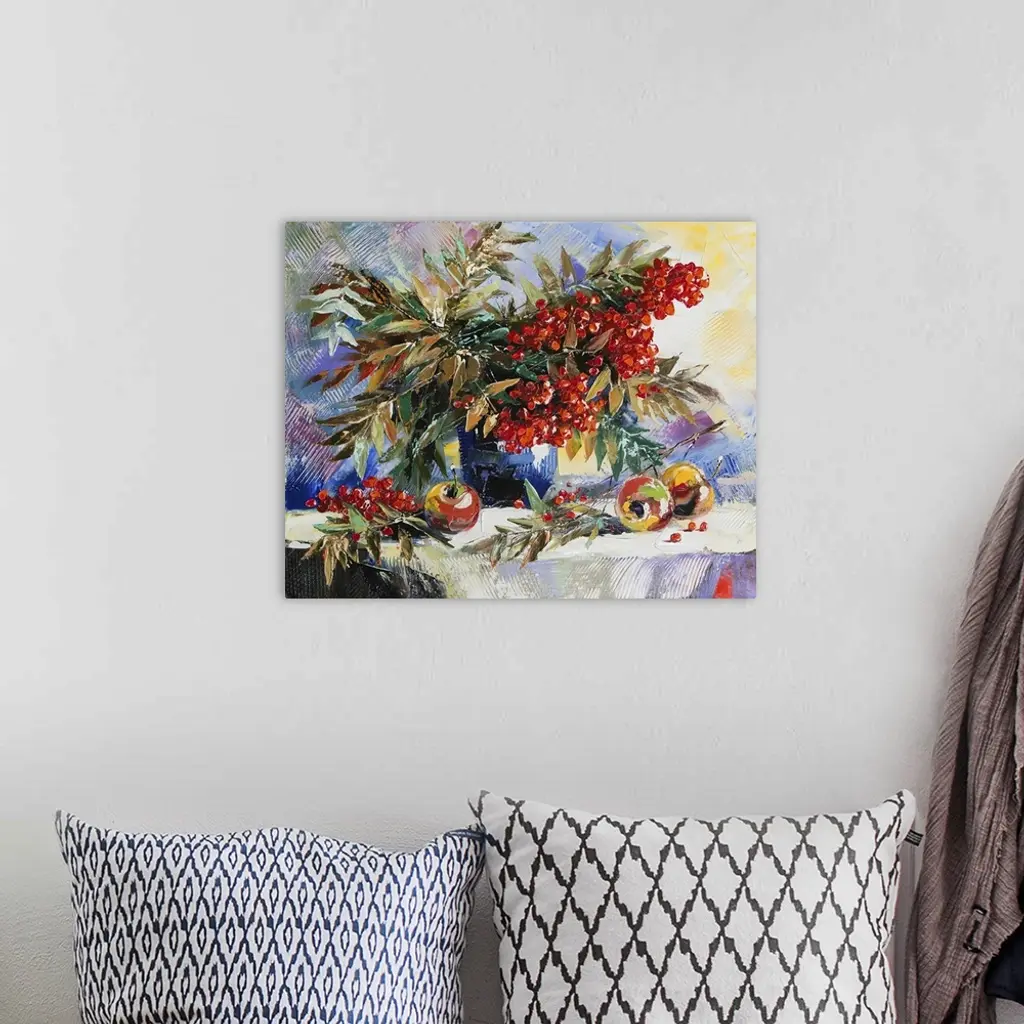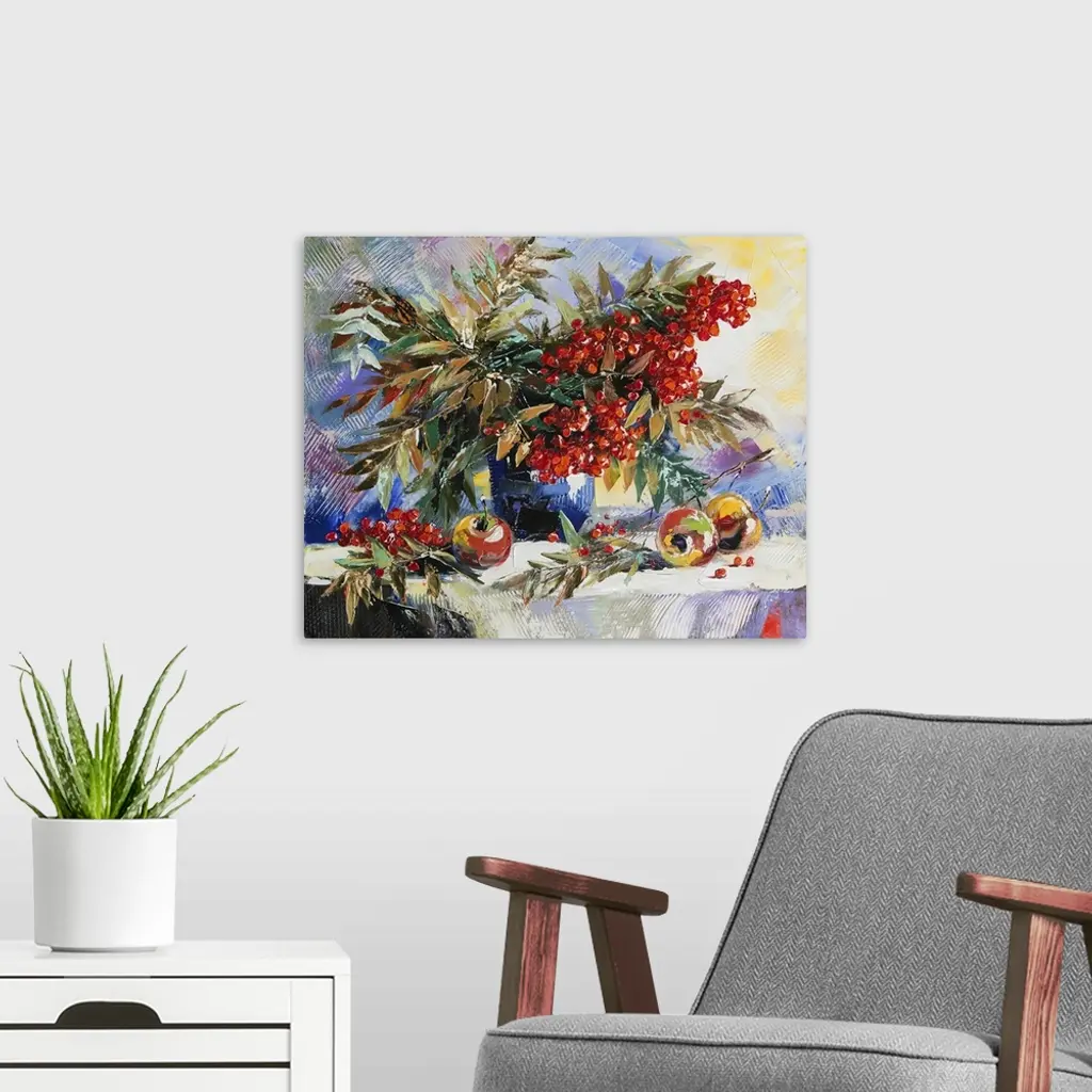 Still-life with a mountain, ash, and apples.