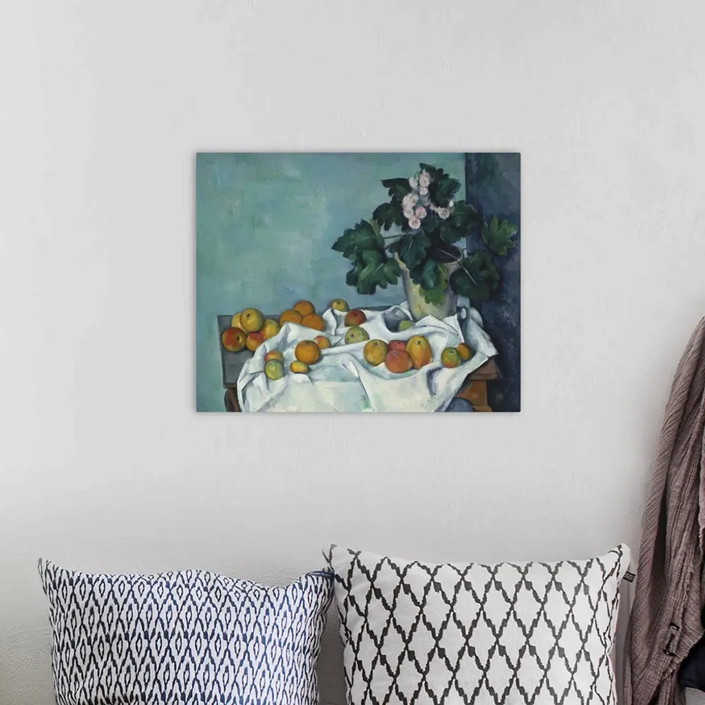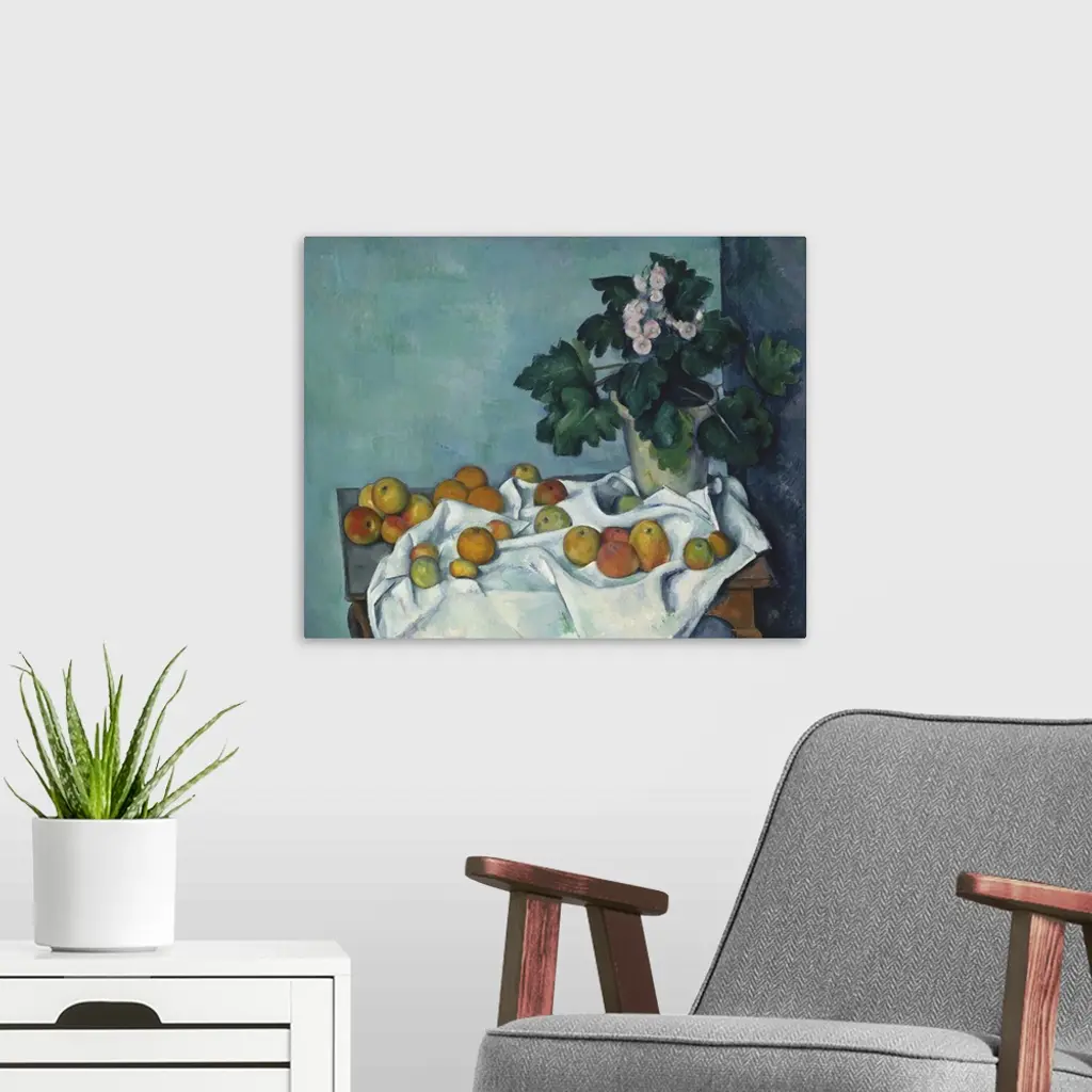 Still Life With Apples And A Pot Of Primroses, 1890 wall art for home and office decor. Discover canvas art prints, photos, mural, big canvas art and framed wall art in GreatBigCanvas.com's varied collections.