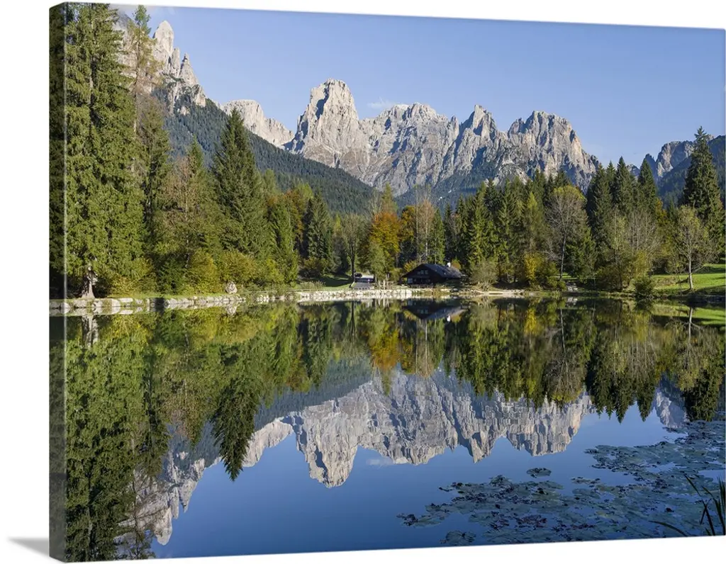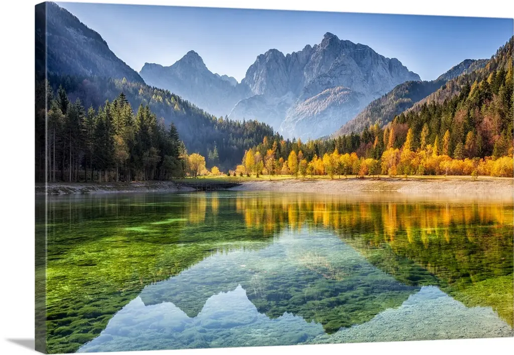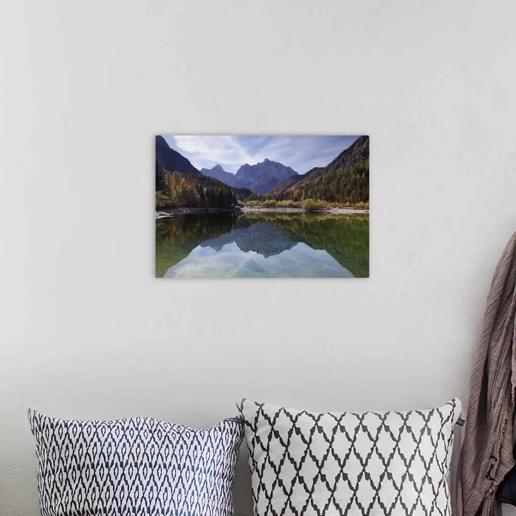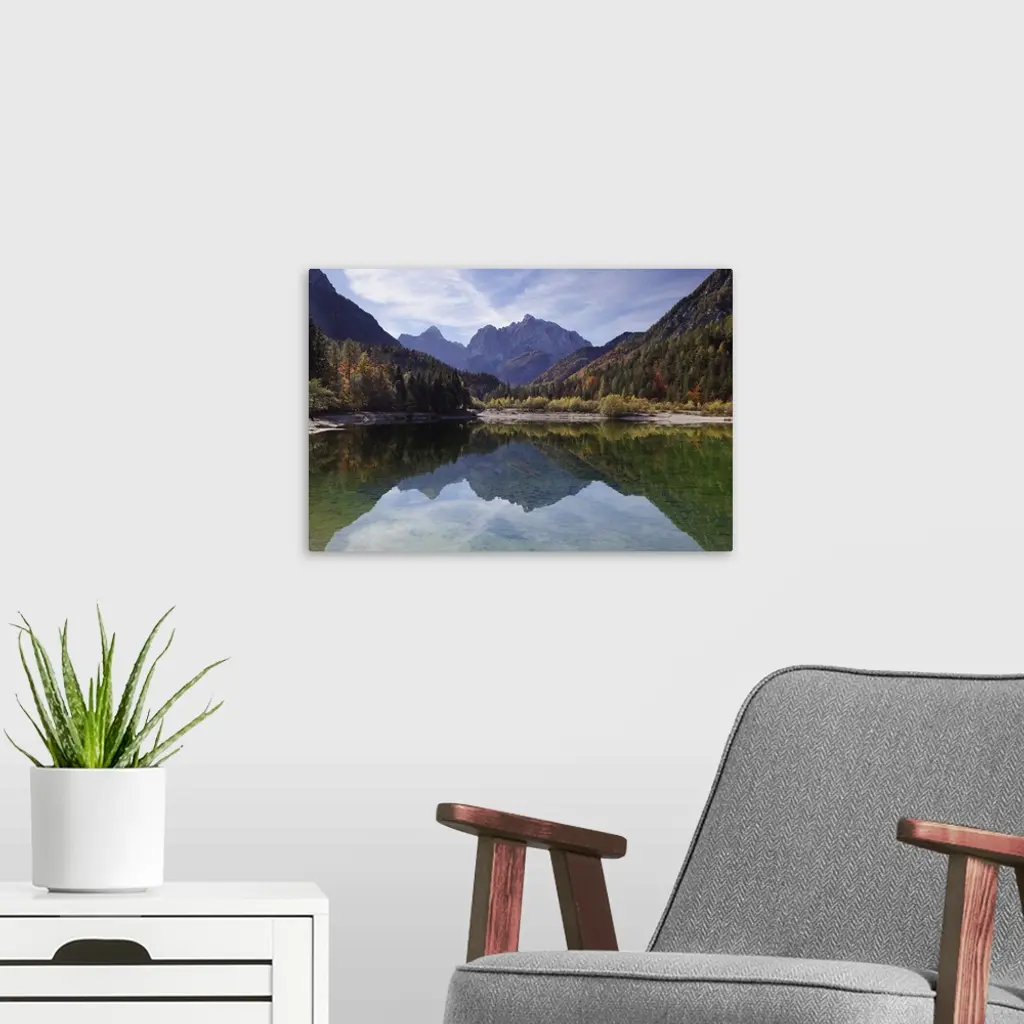 Julian Alps, Peaks of Prisojnik and Razor reflected in pools beside the Velika Pisnca river in autumn.