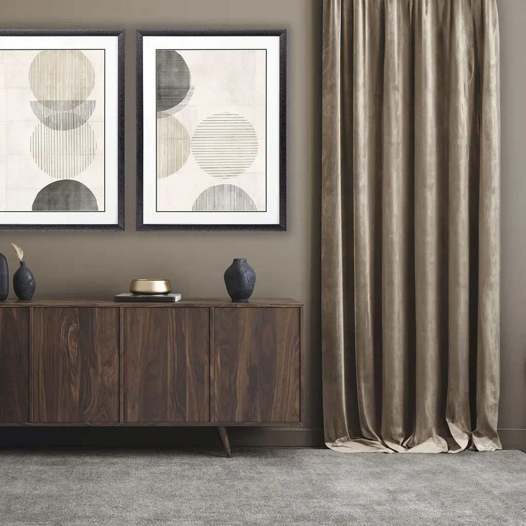 Stitched Spheres Gray And Black And Beige And Neutral Framed Art