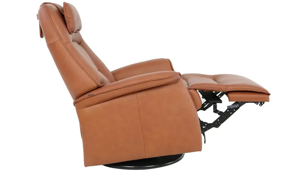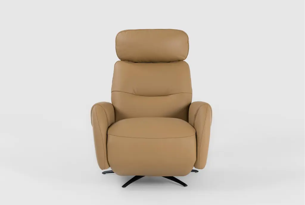 The Stockholm Small Recliner features an adjustable angle headrest, makes the seating experience ergonomic and gives your lower back correct support. Available in all our leathers and select fabrics,Stockholm is a swivel/glider/rocker recliner available in motorized and manual versions.