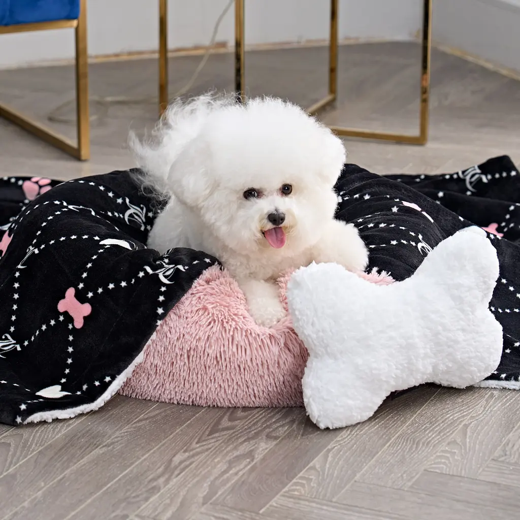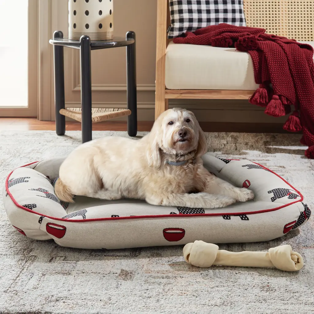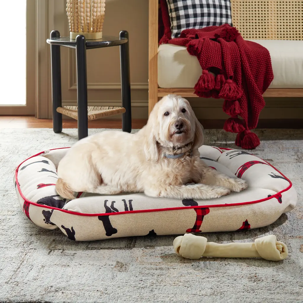 Ideal for both the family dog and family dog enthusiast, Chestnut Stockings (set of three) add a playful finishing touch above the fireplace for the holidays. Chestnut’s soft white, beige, and red cotton play perfectly with its whimsical bone shape.