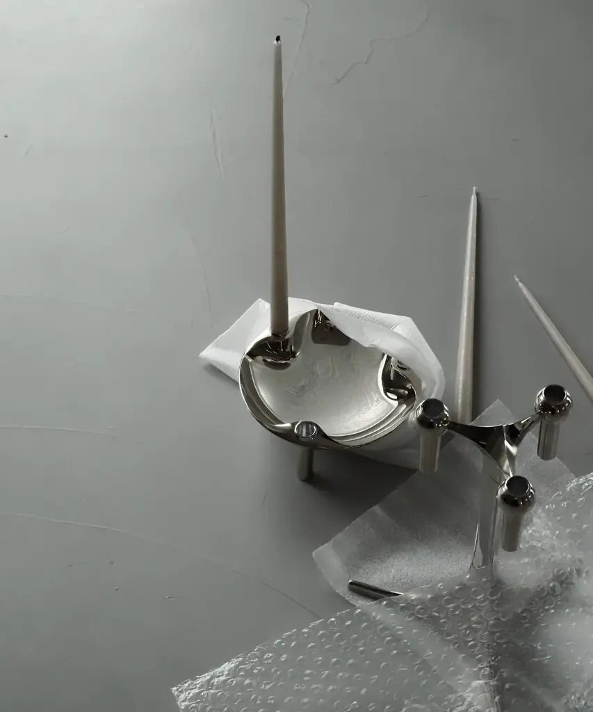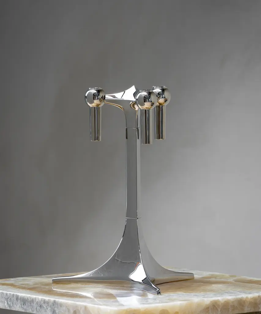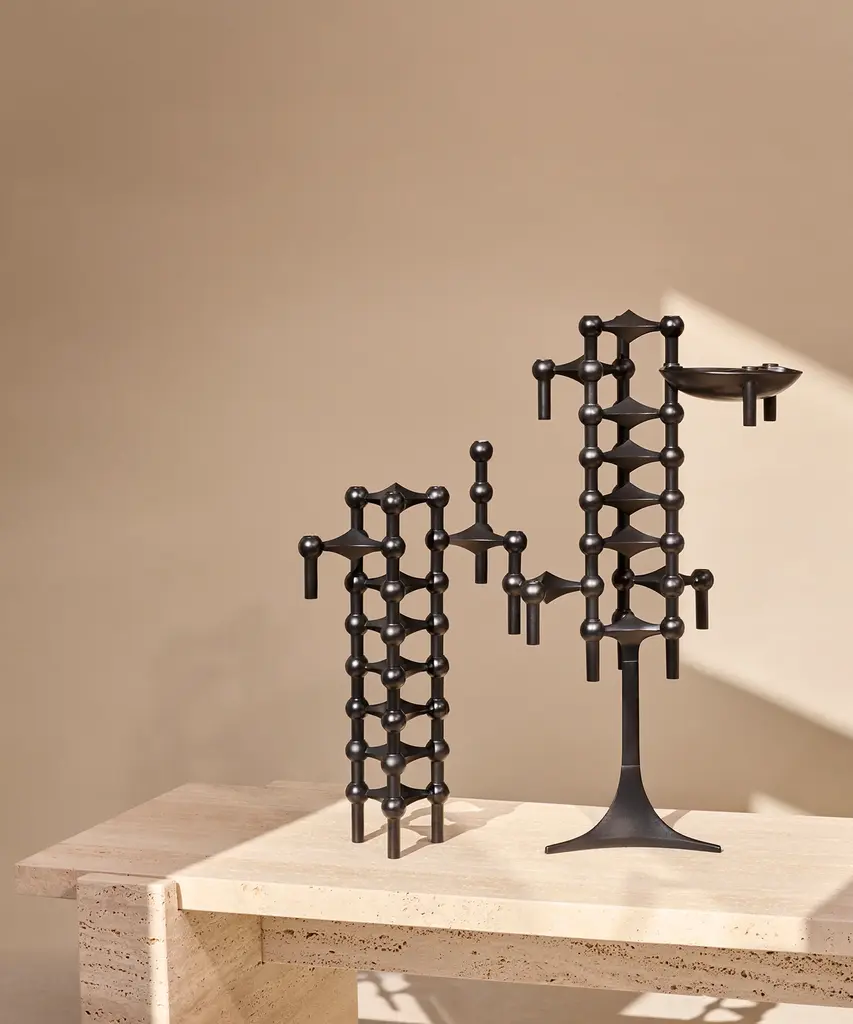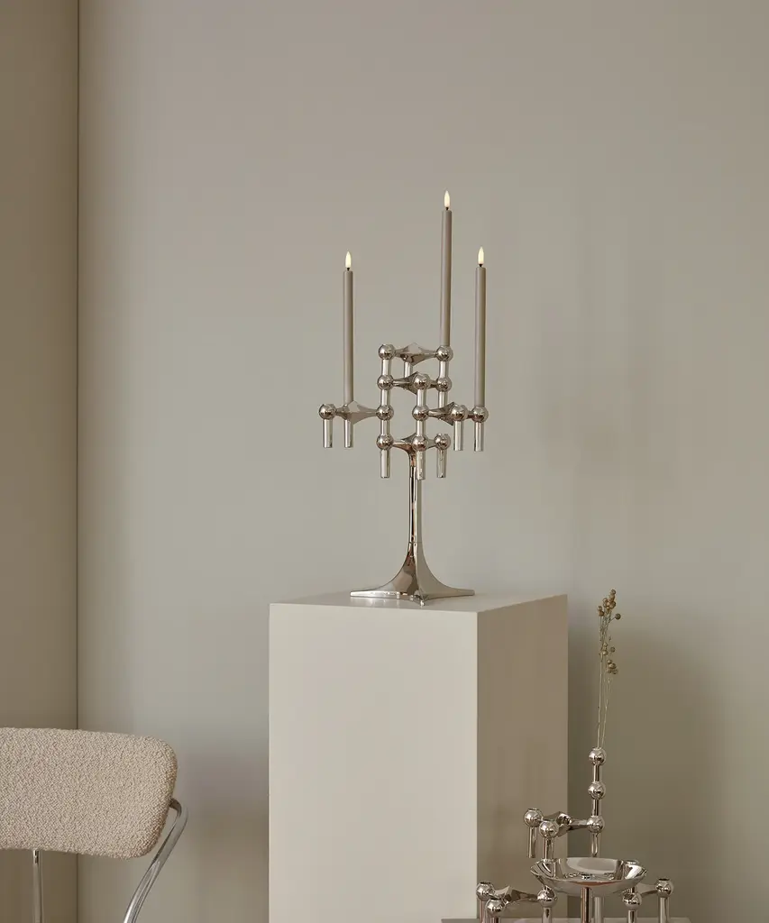 The STOFF Nagel stand is another rediscovery from the 1960s. It can be used on its own or with a number of STOFF Nagel candle holders and candles to create your own sculptural and extravagant candelabra. STOFF Nagel is a Danish design brand founded in 2015 and known for the relaunch of the iconic STOFF Nagel candle holder.
