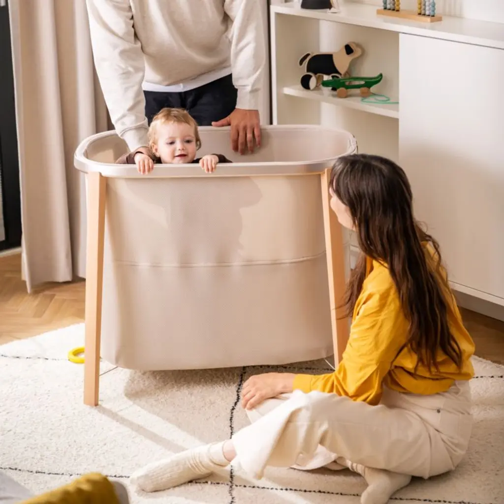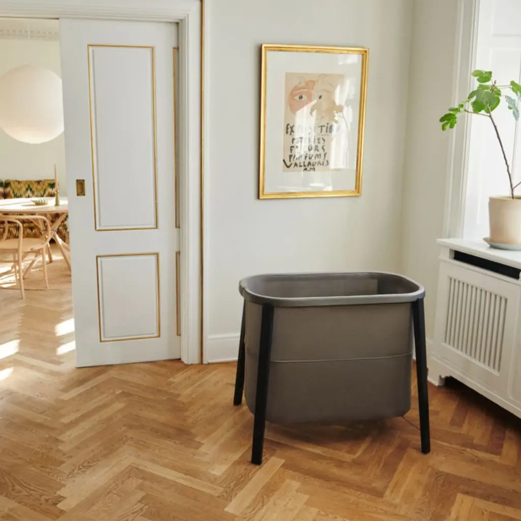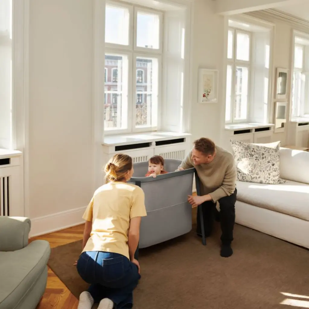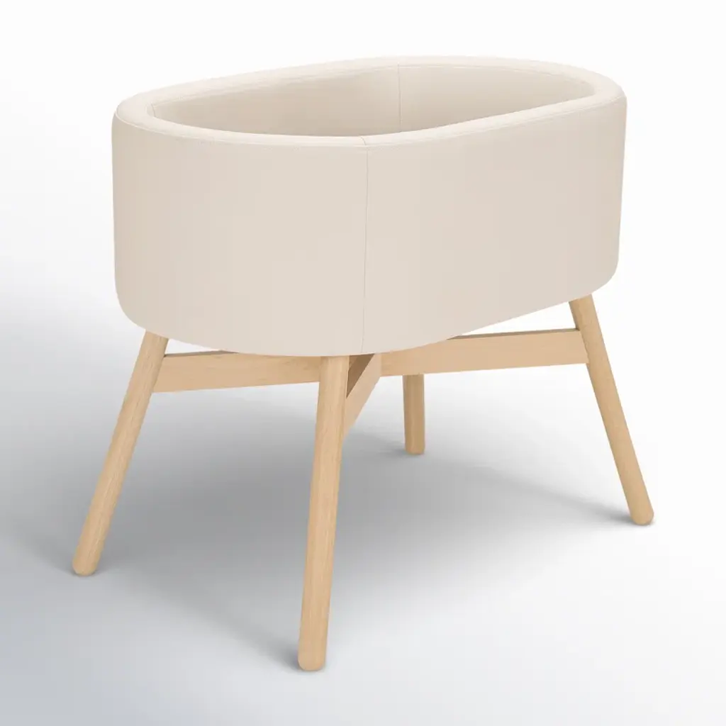 Airy and light with a design-forward oval shape, the graphite grey Stokke® Snoozi bassinet is a beautiful first sleeping space for babies, whether in the nursery or placed near a parent's bed. The firm, comfortable mattress and breathable 3D mesh fabrics make it the perfect place for your newborn to rest, sleep and nap in every room in your home. It adjusts as your little one growsuse the high newborn position for the first 6 months, then lower the mattress when your baby can pull themselves up for use up to 9 months. When it's time for an overnight trip, fold the bassinet flat and carry it in the included travel bagthen easily reassemble it to create a cozy sanctuary wherever your baby may be.