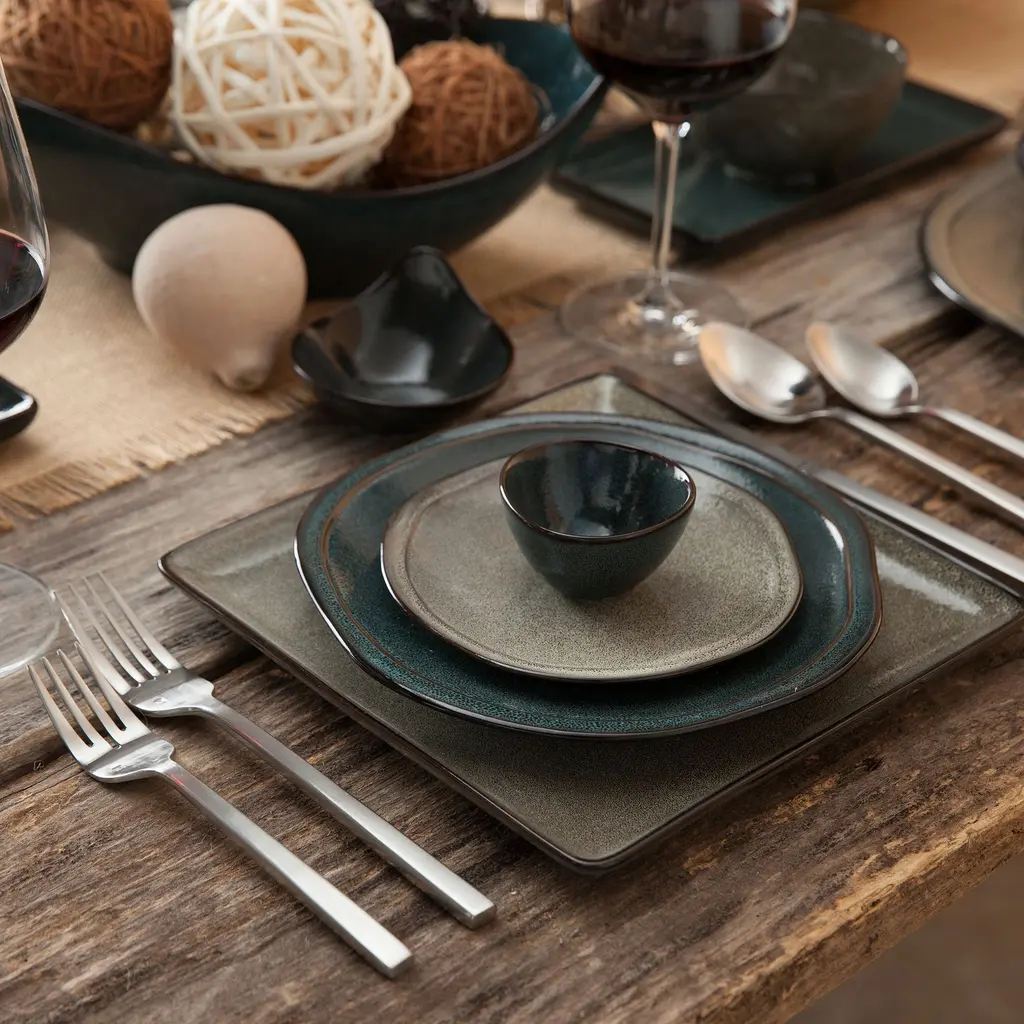 The design is inspired by raw textures from nature. Weathered hues add subtle flair to your tabletop. They're dishwasher and microwave safe.