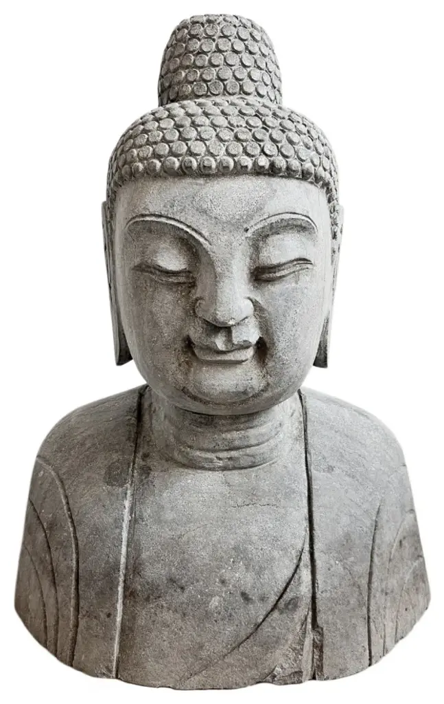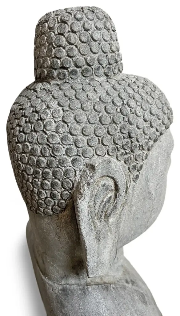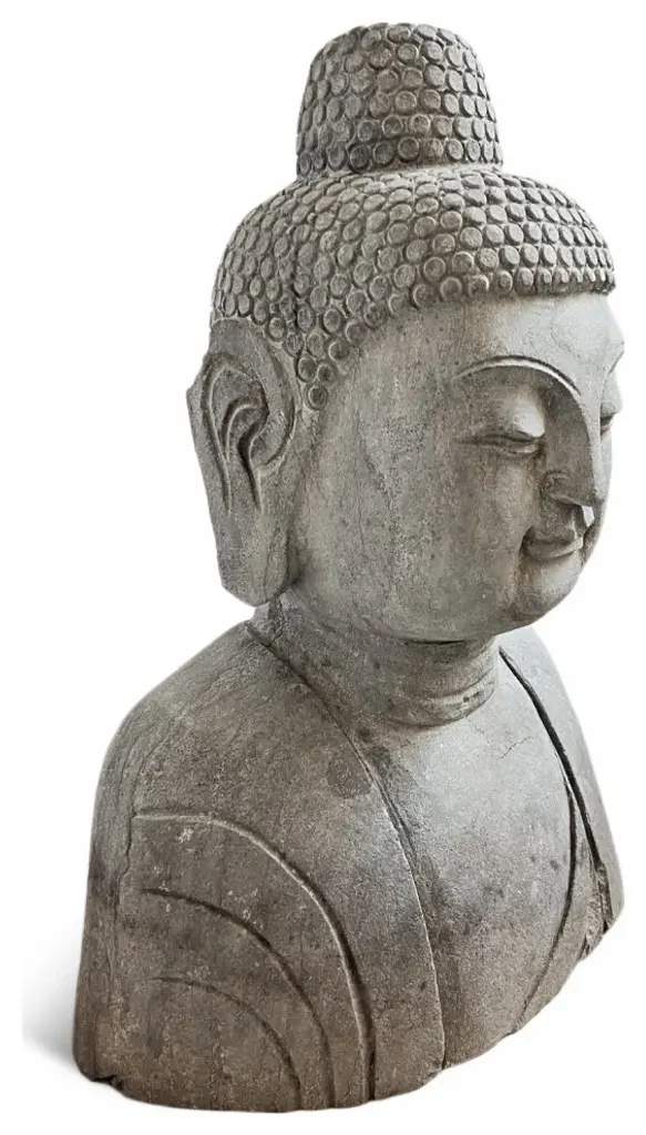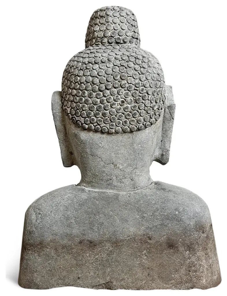 Beautiful hand chiseled sone Buddha bust statue. Wonderful for outdoor or indoor display.