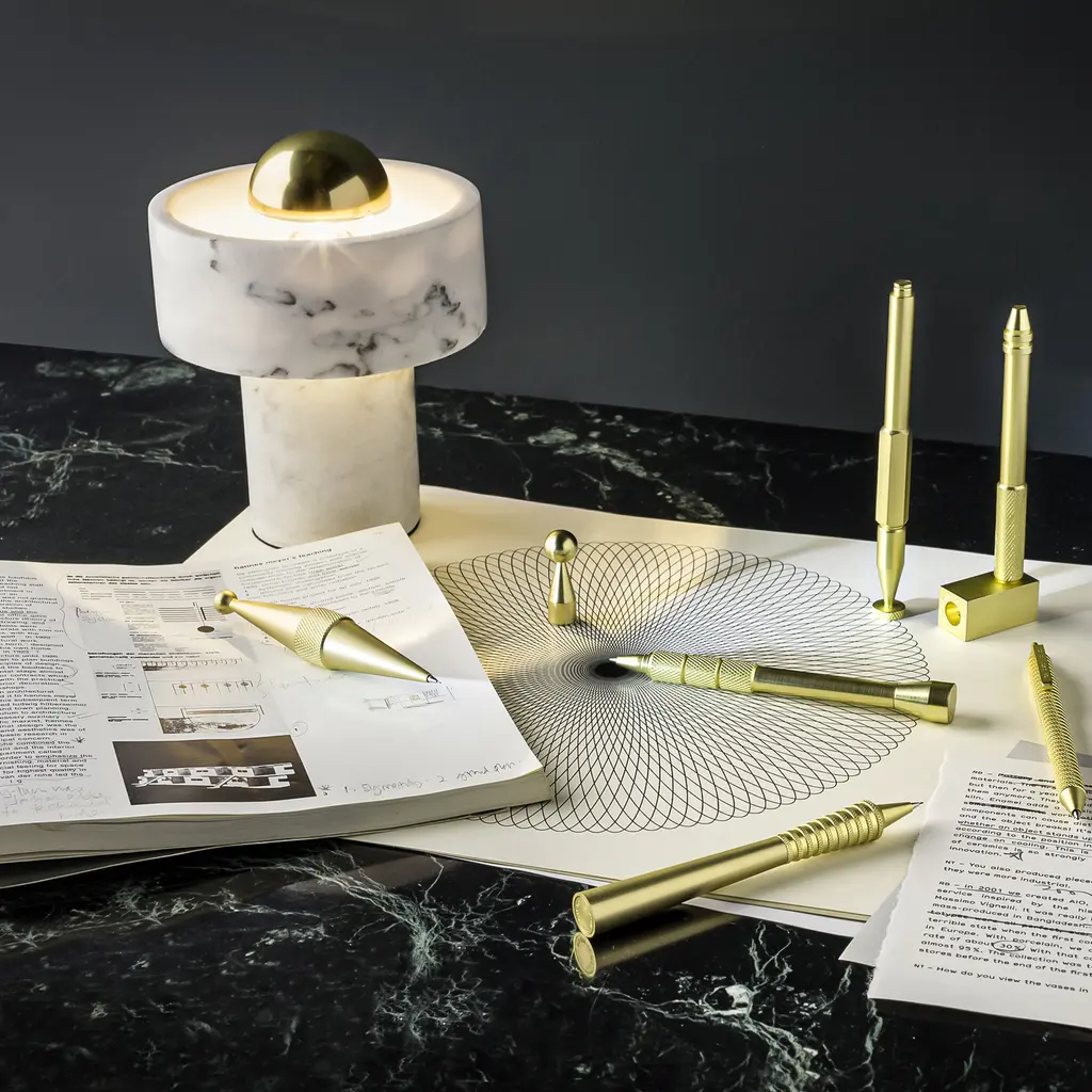 Illuminate your space with the mesmerizing beauty of the Tom Dixon Stone and Portable Led Lamp—a captivating lighting solution that seamlessly combines solid marble stone, lustrous brass, and innovative design. Designed by the renowned Tom Dixon, this portable light is a true testament to his mastery of contemporary aesthetics. Crafted with precision, the Tom Dixon Portable Light features a solid marble body in exquisite Carrara marble. The natural veining and variations of the marble add a unique and luxurious touch to each piece, making it a stunning decorative accent even when not in use. Brass inserts beautifully contrast with the marble, adding a touch of sophistication and elegance to the overall design. Read more The integrated touch dimmer allows you to effortlessly adjust the brightness to create the desired ambiance. From a soft, warm glow to a brighter illumination, the touch dimmer puts you in control of the lighting experience. Whether you’re creating a cozy atmosphere or need focused task lighting, this feature allows for seamless customization. In addition to its stunning design, the Tom Dixon Portable Light is designed for practicality. It is equipped with a rechargeable battery that provides up to 9 hours of battery life, making it truly portable and versatile. Say goodbye to the constraints of traditional wired lighting as you move this light from room to room, creating an inviting ambiance wherever you desire.