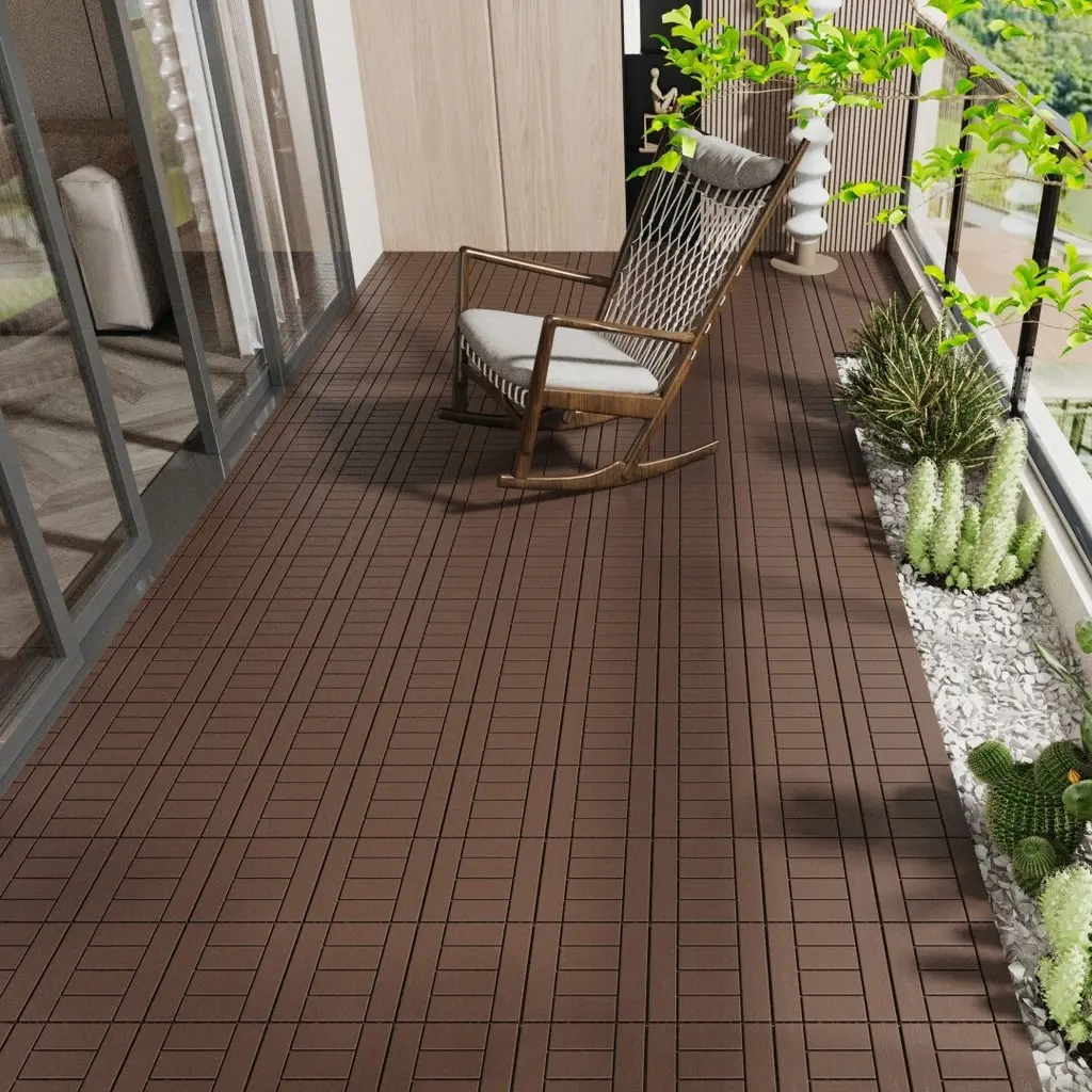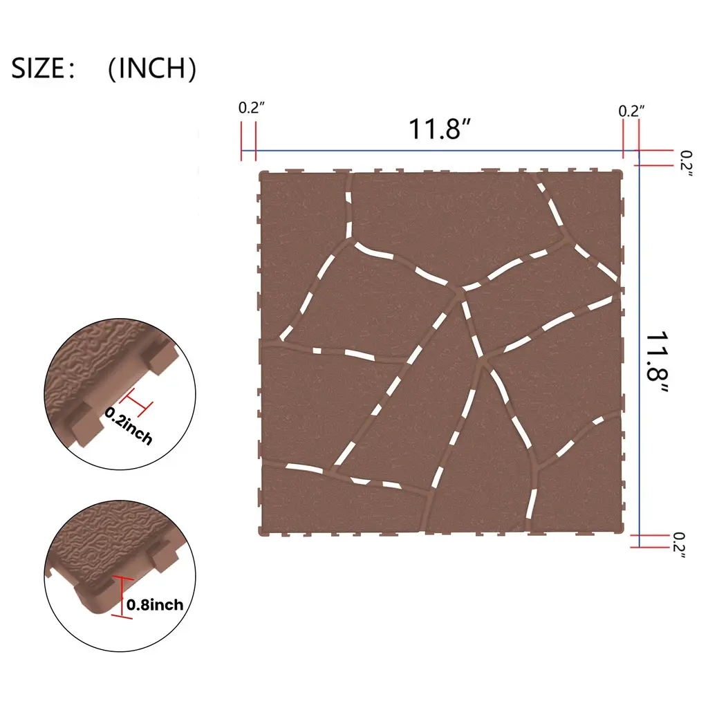 Stone Style 12" Patio Deck Tiles Diy Module Interlocking Decking Tiles Floor Tile - Brown