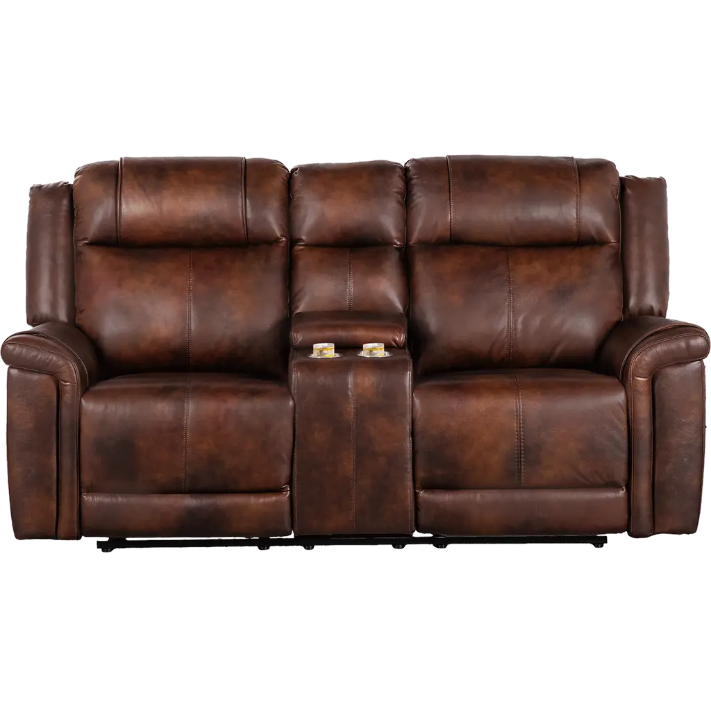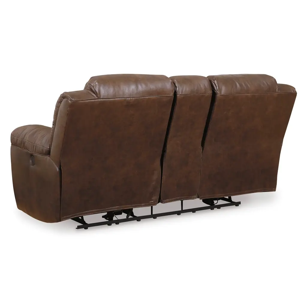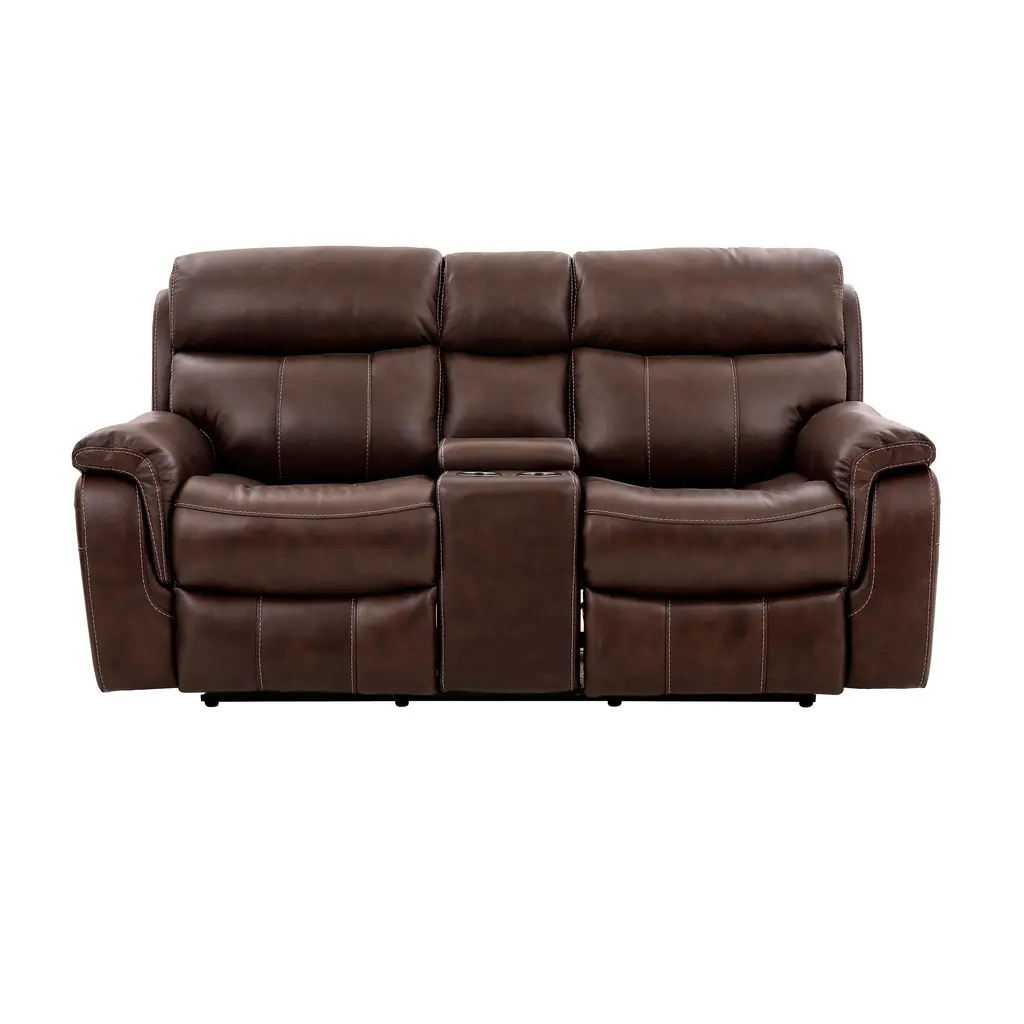 For those that love the cool look of leather but long for the warm feel of fabric, this reclining loveseat with console delivers both with ease. Its high-performance padded faux leather is remarkably durable and easy to clean, just the thing for family spaces. Channel-stitched back cushions provide indulgent lumbar support for maximum comfort—not to mention fashion-forward flair. - Product Details provided by Manufacturer, Slumberland not responsible for errors in information.