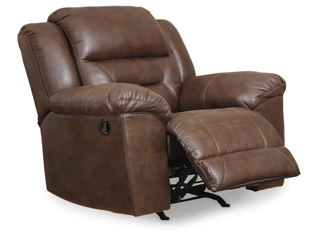 For those that love the cool look of leather but long for the warm feel of fabric, the Stoneland power reclining sofa, power reclining loveseat and power rocker recliner deliver both with ease. When it’s time to relax, the one-touch power control puts the perfect position at your fingertips. Channel-stitched back cushions provide indulgent lumbar support for maximum comfort—not to mention fashion-forward flair.
