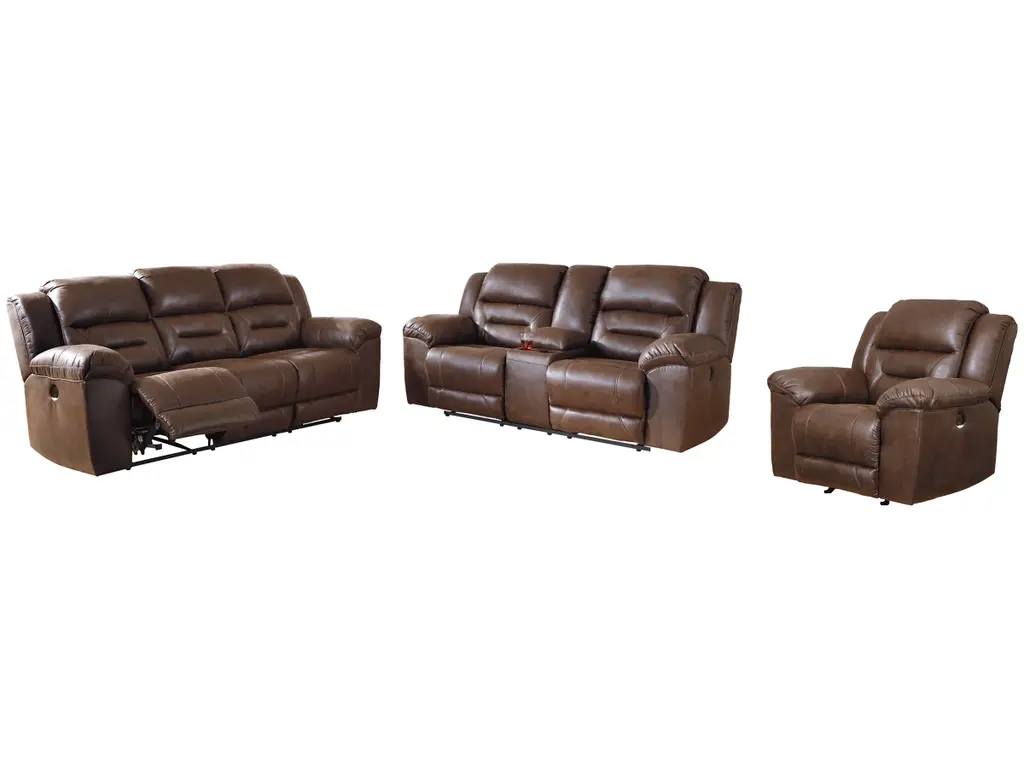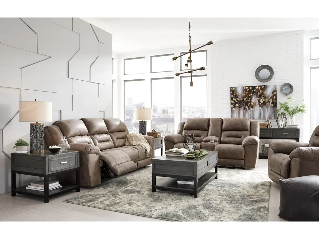 For those that love the cool look of leather but long for the warm feel of fabric, the Stoneland reclining sofa, reclining loveseat and rocker recliner deliver both with ease. Its high-performance padded faux leather is remarkably durable and easy to clean, just the thing for family spaces. Channel-stitched back cushions provide indulgent lumbar support for maximum comfort—not to mention fashion-forward flair.