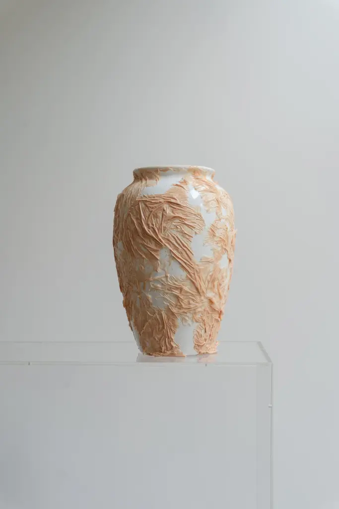 Stoneware, Silicone Large Wrinkled by Daniel ElkayamDimensions: D 15 x W 15 x H 25 cm Materials: Stoneware, Silicone.Jerusalem-born Art-designer and Photographer based in Tel-Aviv. Operating in the field of sustainable home decor and specializing in conceptual design, material exploring, and story-telling through objects. Graduated in 2019 his Bachelor's studies at the Industrial design department at Bezalel Academy of Arts and Design, Jerusalem. A former member of the Bezalel Alumni Design Incubator 2020. Won the excellent scholarship of America-Israel cultural foundation of 2019 Inspired by nature and its phenomenons, the artist transforms natural materials and aesthetics into one-of-a-kind unique objects. In his works, Daniel implements his curiosity and yearning for unrefined aesthetics, and by material transformation and unique techniques he is developing in his studio, he shows how unattractive materials can be not only valid but luxurious. Elkayam examines the range between art and design by taking things in and out of their context, creating hybrids between different worlds of content, intervening in natural processes, while leaving a gap for the unexpected, the unknown. He expresses his inner world and illustrates his ideas by creating objects and experiences. Through his perspective of materiality, and empathetic vision of his surroundings, he developed an intuitive way of creation with experimental materials such as algae, corrosion, charcoal, and more. Every collection of objects expresses different material research and follows curious narratives and a variety of topics such as locality, transience, and decay of materials. THE CHARRED COLLECTION: A collection of handmade wooden objects inspired by one of the most powerful natural phenomena in our world, which is out of control. Today the percentage of fires caused by natural causes is significantly lower than those caused by humans. The huge fires quickly deplete the forests, leaving behind a particularly surrealistic view of a burnt, black piece of nature. Out of interest in this show was created the desire to preserve the unique aesthetics of the burnt wood and to express in objects the feelings and questions it raises as a raw material in itself. The same scorched aesthetic combined with everyday objects, on the one hand, serves as a mirror for the consequences of the situation we have created and as a means of dealing with its ecological results, and on the other hand, as a visual echo of fire intensity and aesthetic effects.