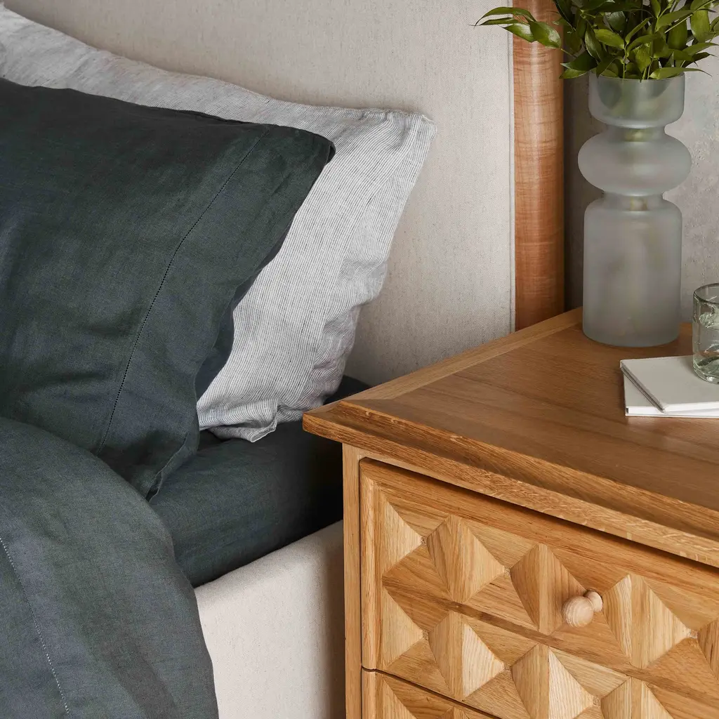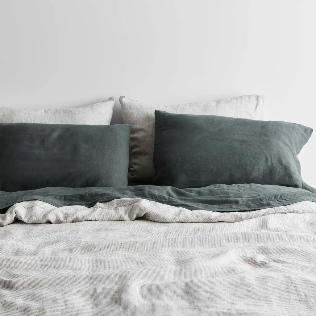 Warm sienna combines with subtle graphite stripes for a statement bedroom look. Save 10% off the regular price when you bundle. Organic textures. Laid-back appeal. Effortlessly luxurious. Our linen bedding is, in a word, heavenly. And it’s the softest we’ve ever felt– each piece is garment washed to ensure it’s the softest you’ll ever touch. And the best part? It only gets softer with time (that is, every single time you wash it). Choose from six sets, curated by The Citizenry design team. Set includes (See exact colors): - 1 Sheet Set - (1 flat sheet, 1 fitted sheet, 2 pillowcases) - 1 Duvet Cover - 2 Extra Pillowcases Made using only the finest French flax and woven in the oldest, family-run linen mill in Portugal, each piece is Oeko-Tex® certified and made start-to-finish in a fair trade environment. Want to see our bedding for yourself? Go on and test out our linen fabric swatches.