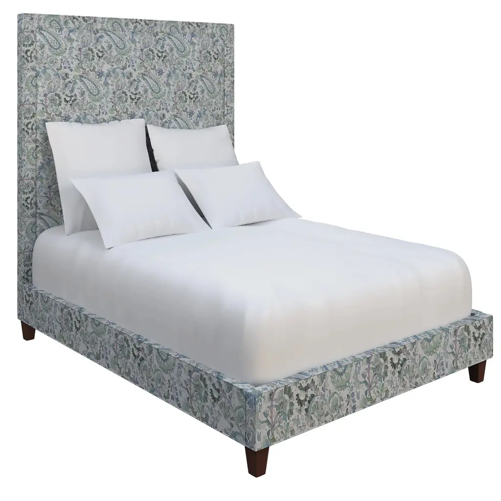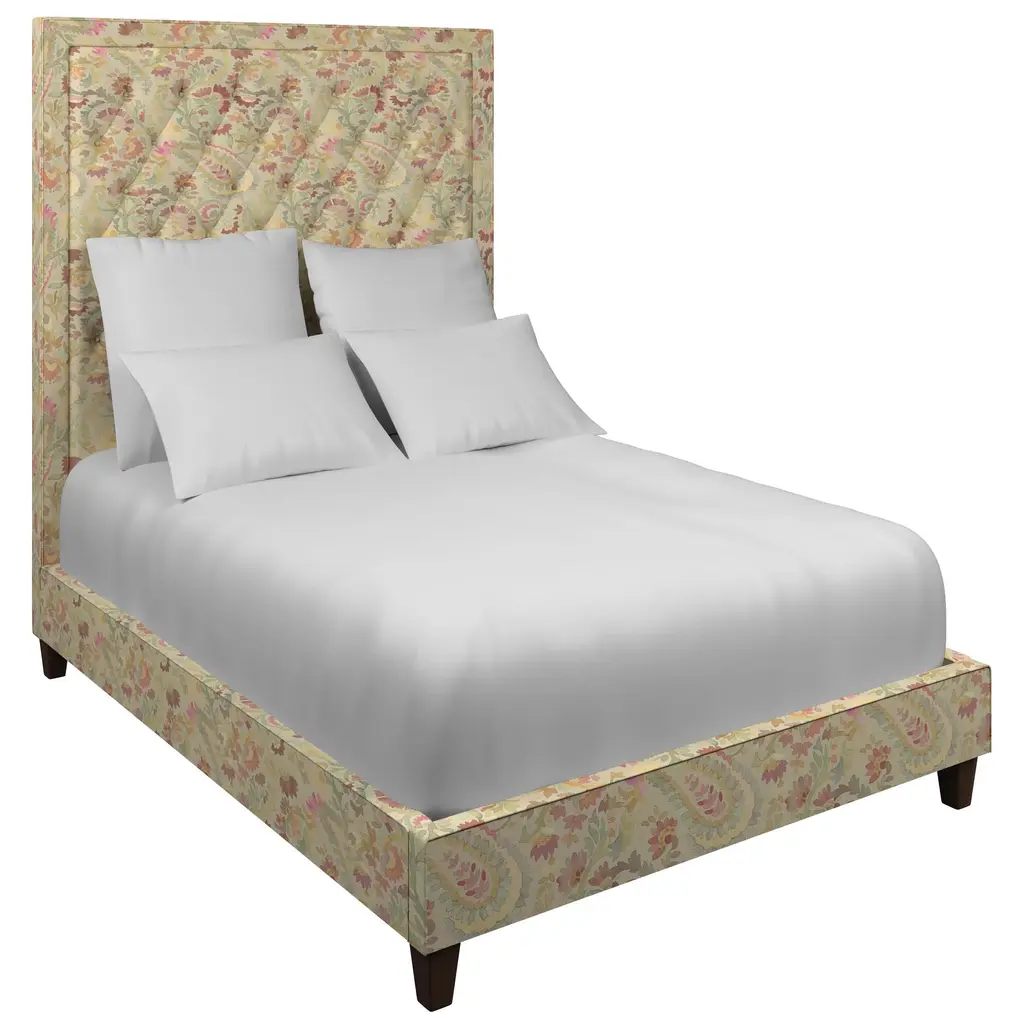 This gorgeously upholstered bed grabs the attention with its dramatic height and clean-lined, square silhouette. The addition of intricate diamond tufting with buttons adds visual interest and depth to this trusted-and-true classic. Make it your own with your choice of fabric.