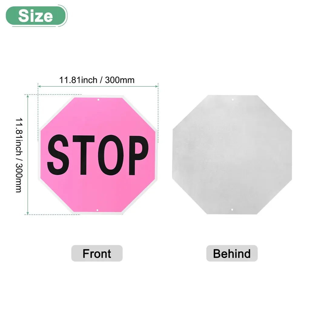 PRODUCT APPLICATIONSThis road reflective warning sign is universal for various applications. They can be used outdoors, home, yard, door, walls, fences, posts, poles, etc.PRODUCT DETAILS & INCLUDE√ Material: Aluminum√ Color: Black Lettering On Pink Background√ Size: 300x300x1mm/11.81x11.81x0.04 Inch(L*W*H)√ Package Includes: 1-Pack x Waterproof Street SignsPRODUCT ADVANTAGES1. Traffic signs are made of aluminum, which is durable, anti-rust, and waterproof, it has good wear resistance and can be used for a long time.2. This street sign has 2 Pre-drilled holes and rounded corners designed for easier installation. Reflective signs are easy to see, reflective aluminum signs illuminate when struck by light from headlights or any other source. This makes the message readable even in dark and low lighting.ATTENTIONBecause of the light, the color and size will be slightly wrong.