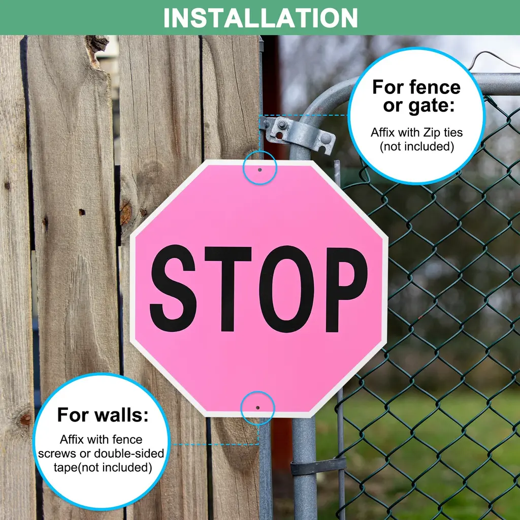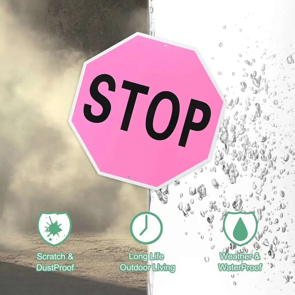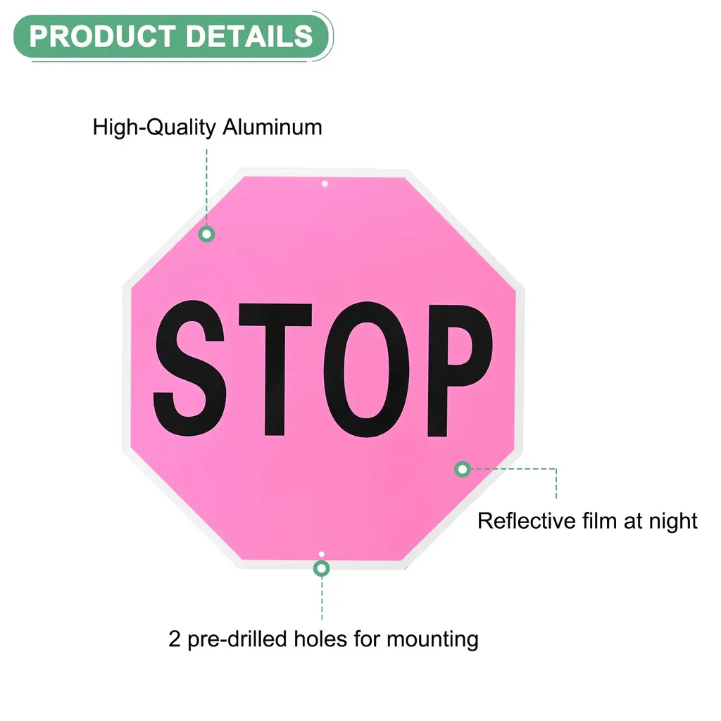 Stop Sign Aluminum,black Lettering On Pink Background - Black Lettering On Pink Background - 18x18 Inch - 4 Pcs