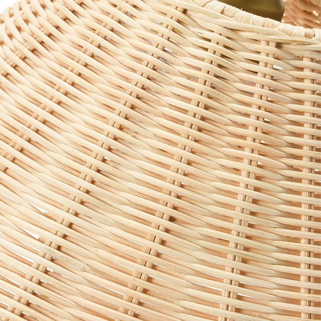 Contemporary Wall Sconce; Woven Rattan Shade, Antique BrassThis wall sconce light is the perfect addition to your home for a modern look and feel. It provides plenty of light to brighten up your home. It features an antique brass finish.