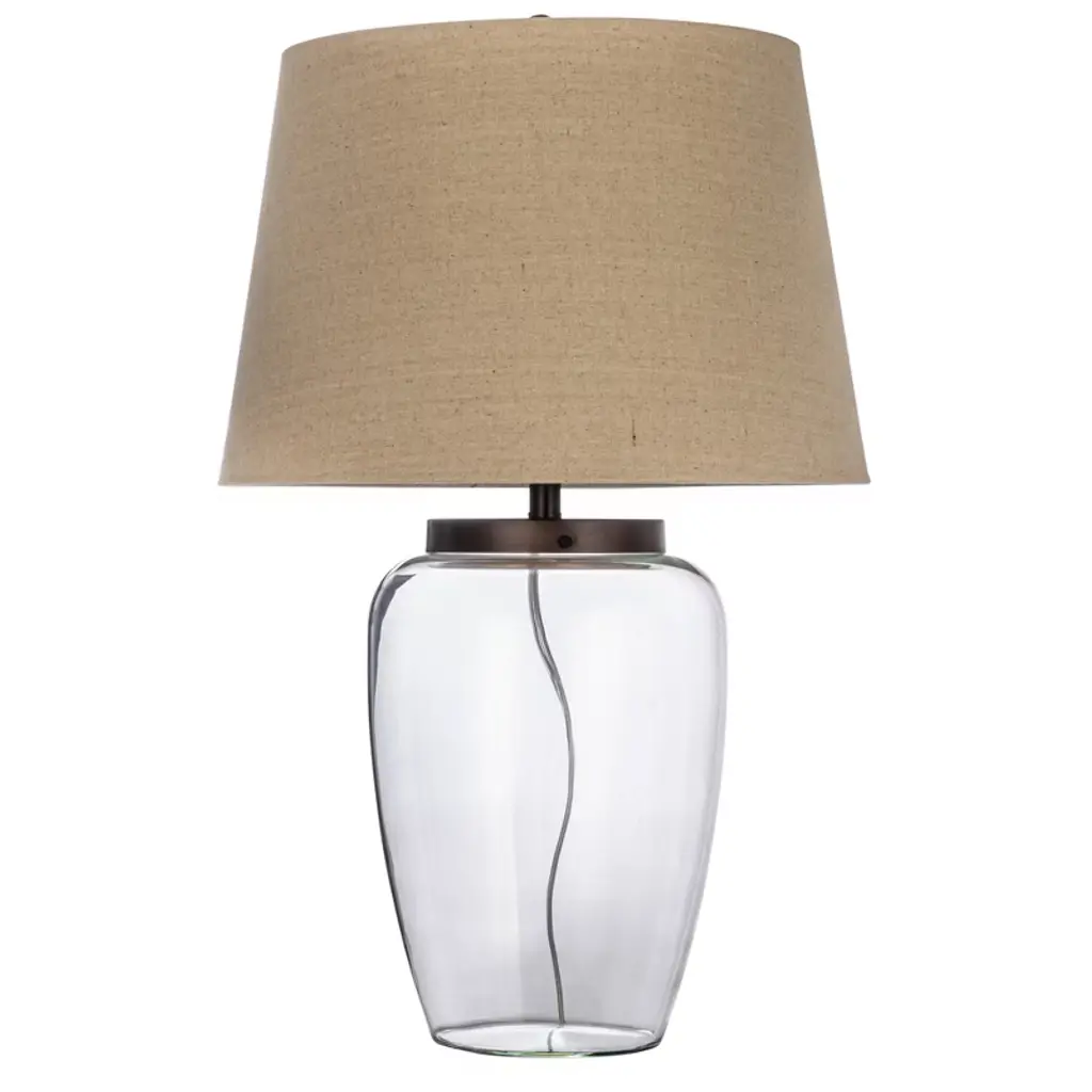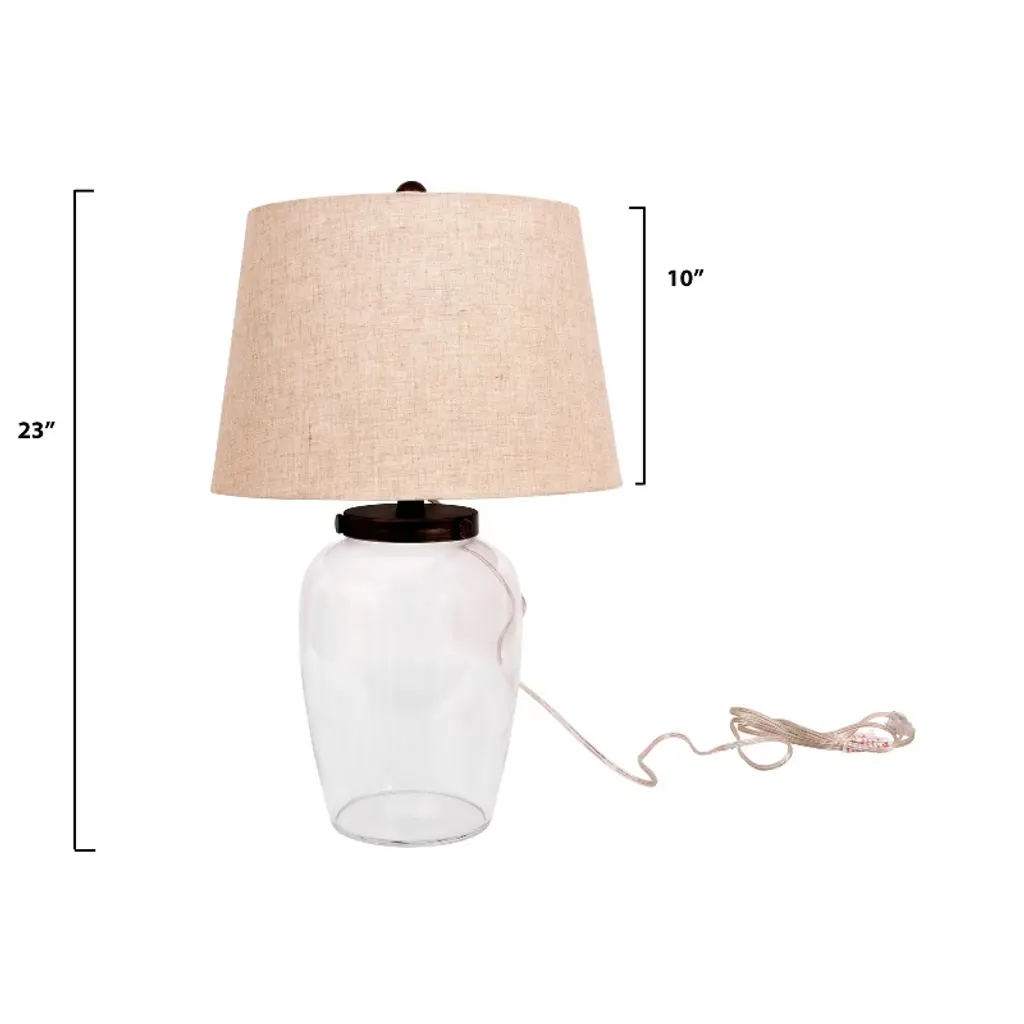 Storied Home Fillable Glass Table Lamp With Linen Shade, Clear And White