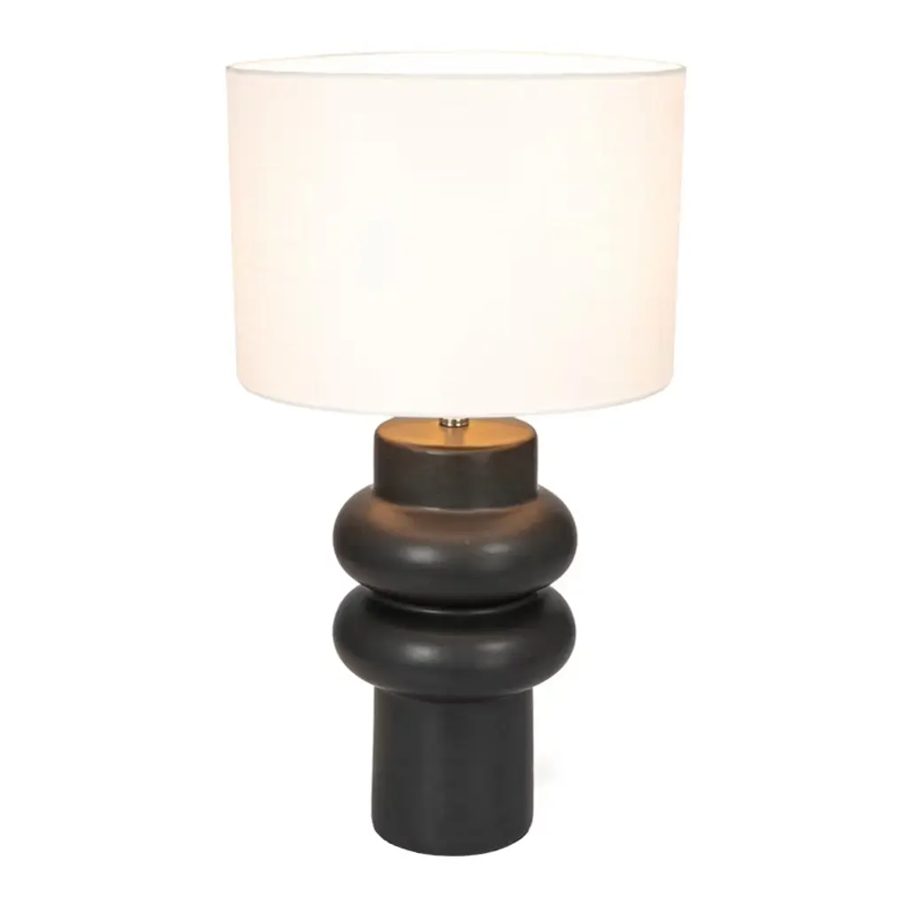 Storied Home Stoneware Table Lamp With Linen Shade, Black