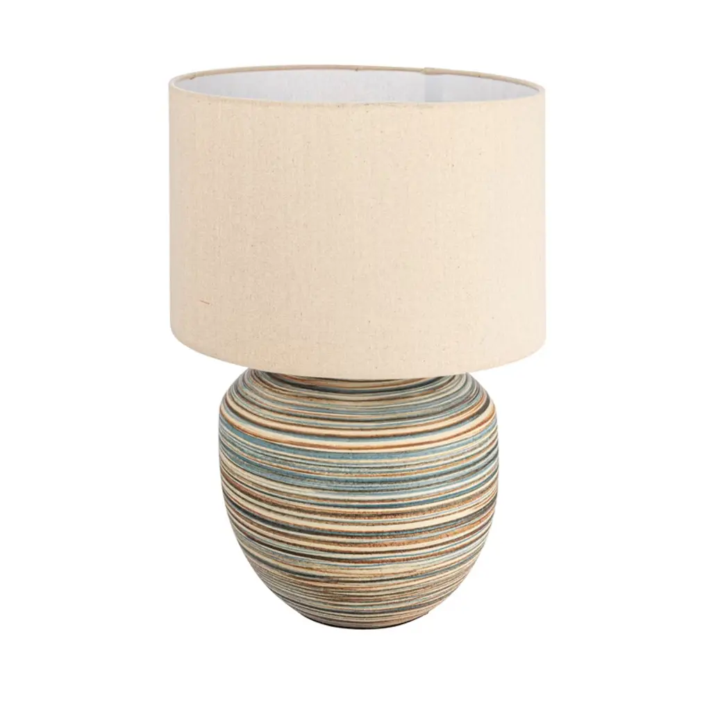 Storied Home Stoneware Table Lamp With Stripes And Linen Shade, Multicolor