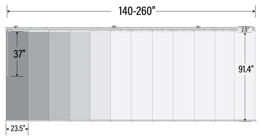 Central Design Products is pleased to introduce a new innovative panel track that offers easy 2-way installation, adding an alluring style and refined touch to your home decor. The double rail design of the track is sleek, compact, and reduces the overall footprint and weight of the installation, eliminating bulky, intrusive window treatments. Adjusting the panel height is a breeze � simply trim the panel, re-attach the liner, and install the panel weight. Detailed instructions are included.The panel track also features a patented slider design, made with aluminum and fitted with bearings that allow for durable and smooth operation. The sliders are stacked closer together than conventional panel tracks, reducing light bleed coming from the gaps between panels. This track has endless uses from dividing rooms, garages, offices, and closets to decorating windows and patios. Available in smaller sizes including 3, 4, 5, 6, and 7 panels. Extends from 140-260� wide. Each panel measures 23.5" wide and 91.5" tall, with a total installation height of 94" (includes the 2.5" rail track). The track can be wall or ceiling mounted. The panels can stack on the left or the right. The clearance from the wall is extendable from 1.25� to 3.25� and projection from the wall is extendable from 3� to 4.25�. Stormy panel is made from 100% Polyester, with a light filtering shade that blocks 70% of the light.