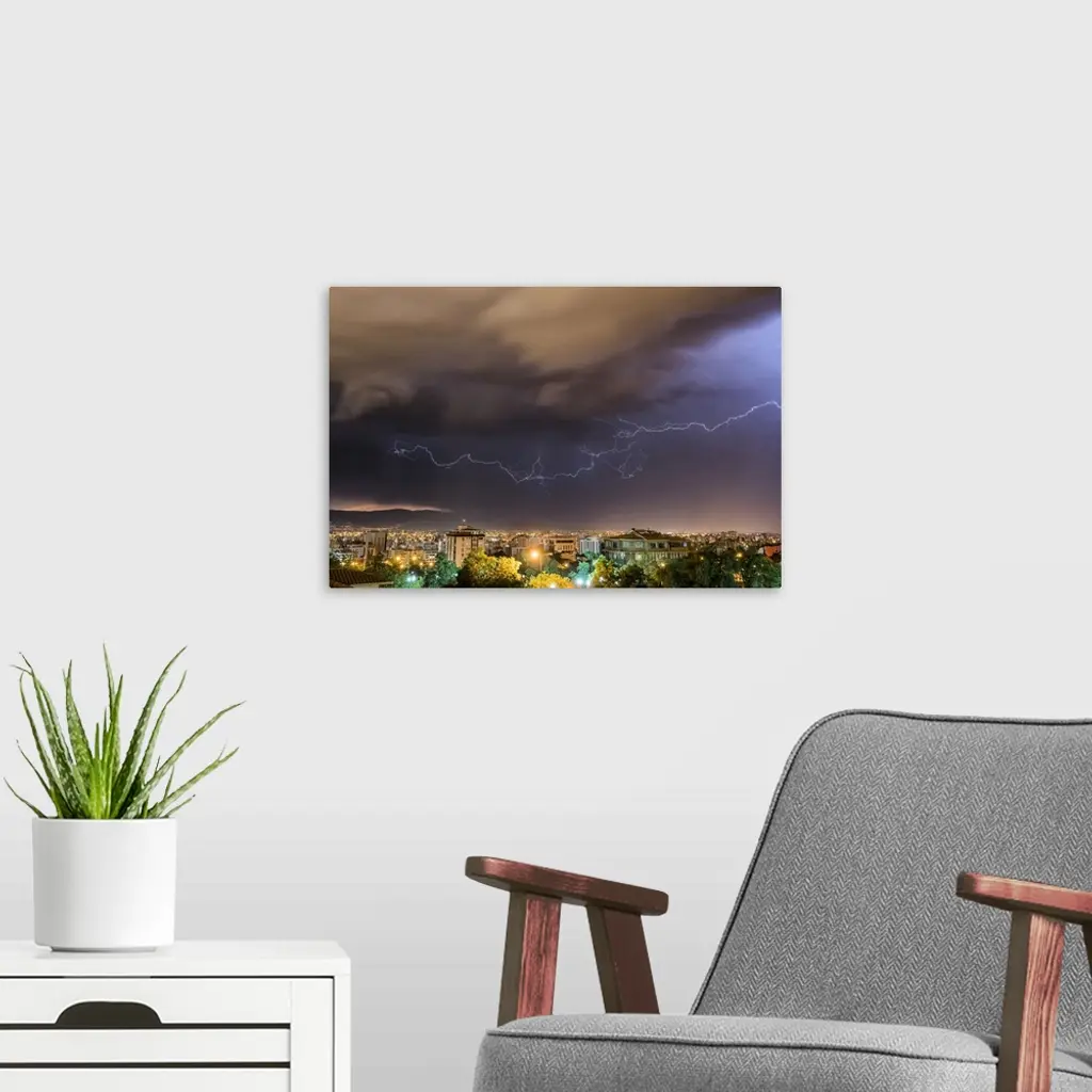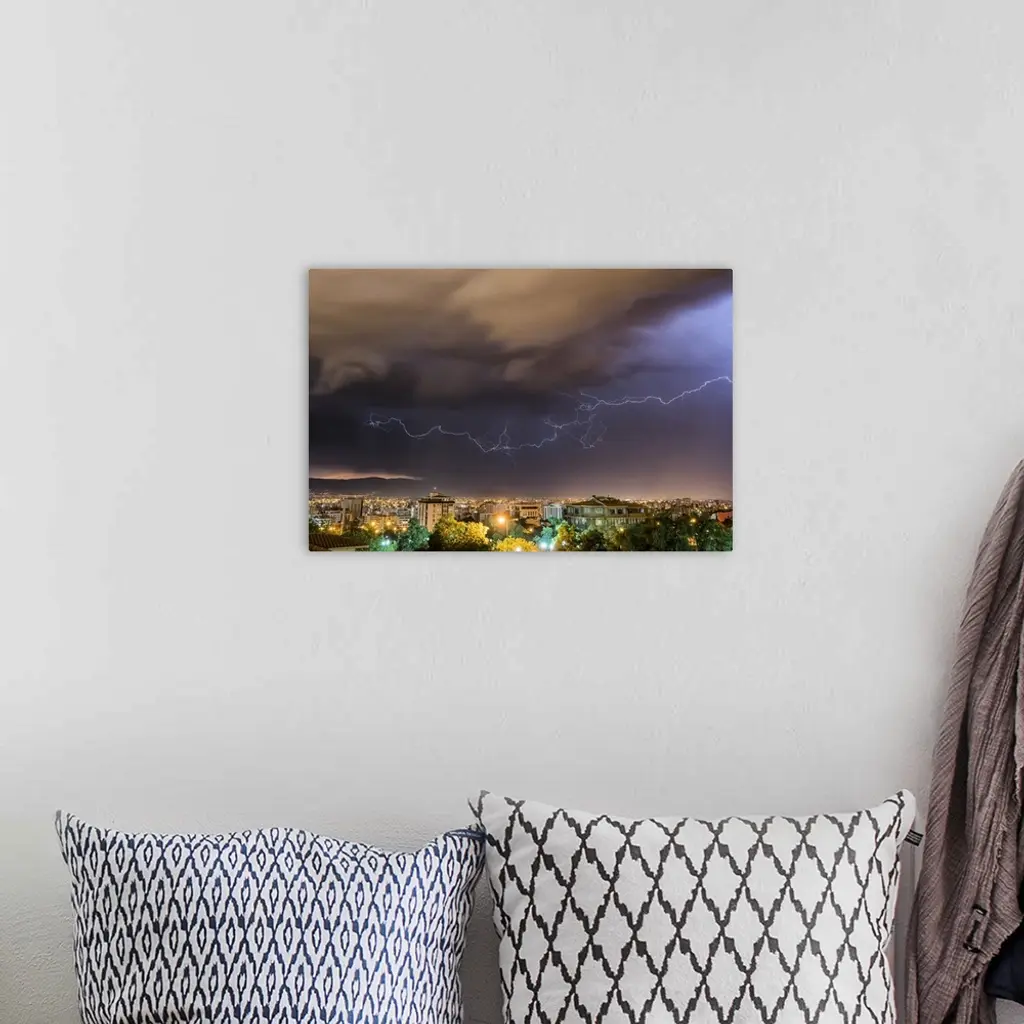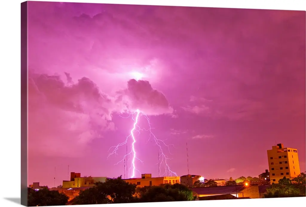 Stormy Skies And Lightning Over A City At Night, Cochabamba, Bolivia