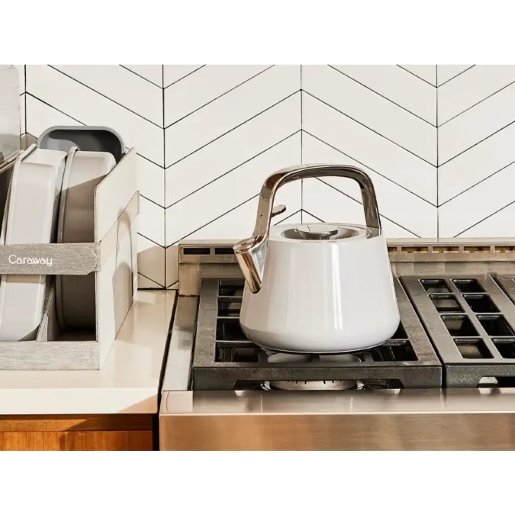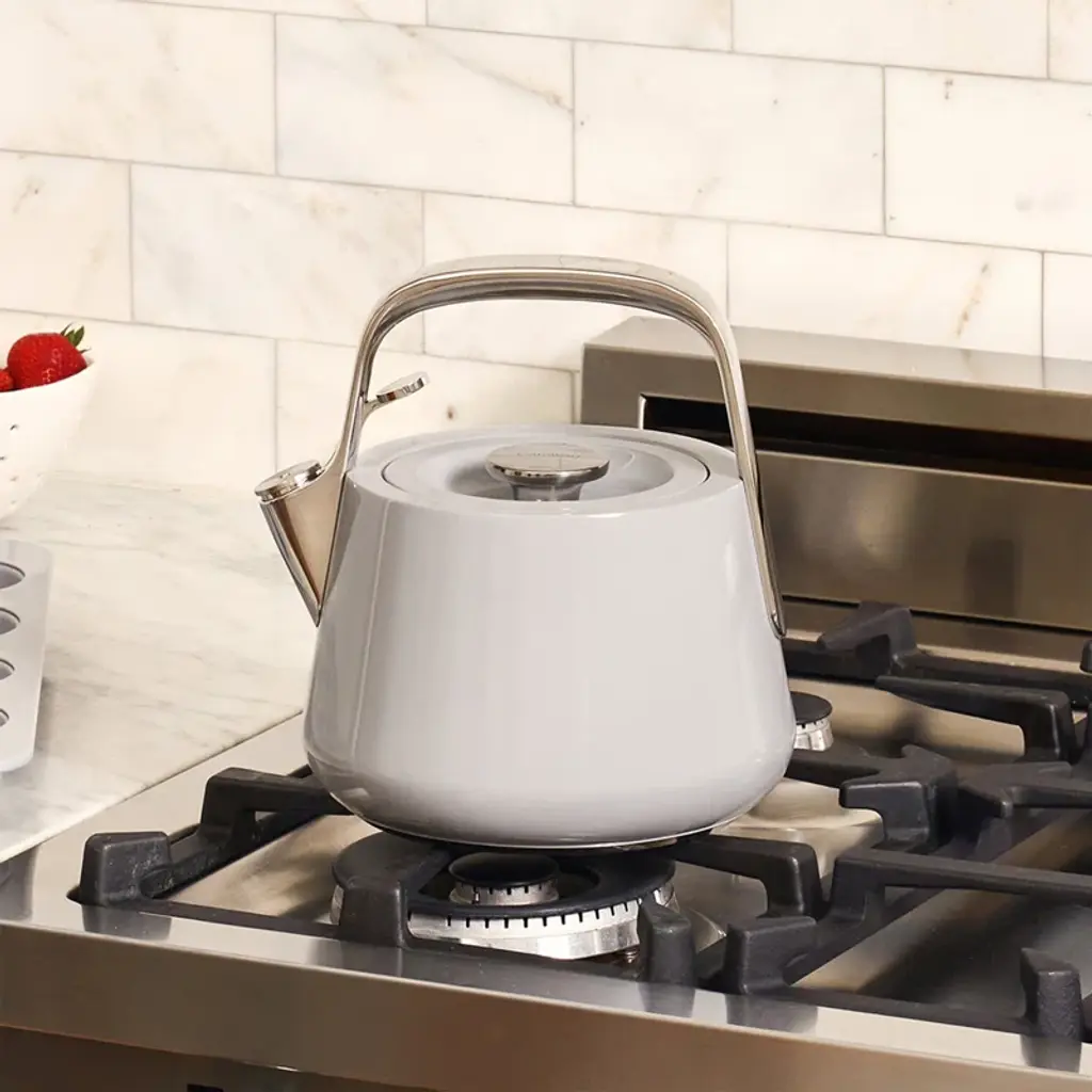Meet your stovetop's new centerpiece. Caraway's Whistling Tea Kettle is a modern take on a classic kitchen essential, constructed with non-toxic materials to keep your boiled water clean and free of harmful chemicals. As easy on the eyes as it is on the ears, our durable stainless steel Tea Kettle is one worth whistling at.