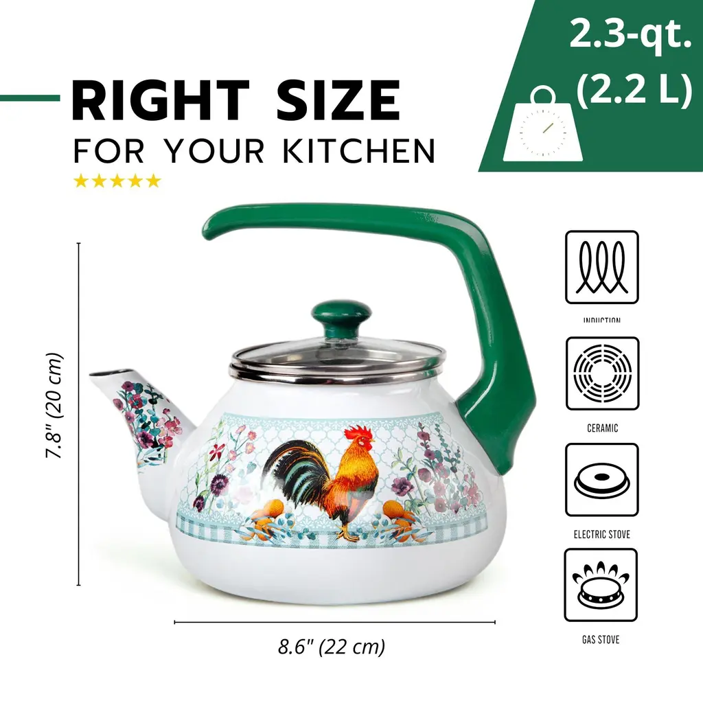 Stp Goods 2.3qt Rooster Enamel Kettle - 2.3 Qt - 2.3 Qt