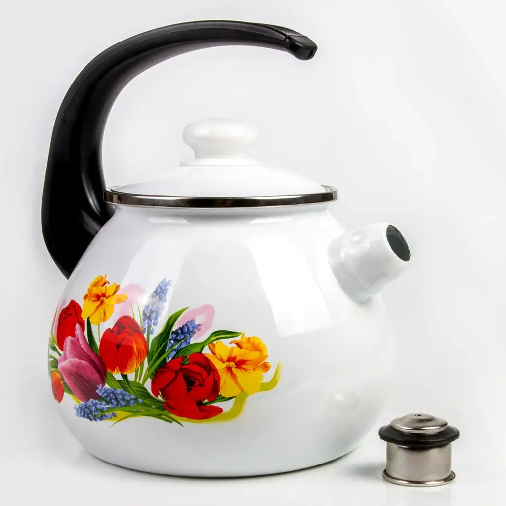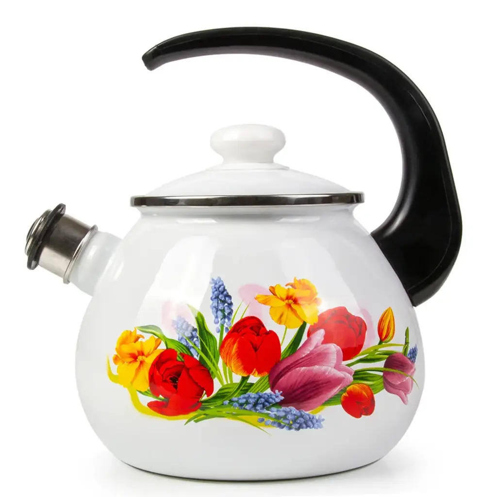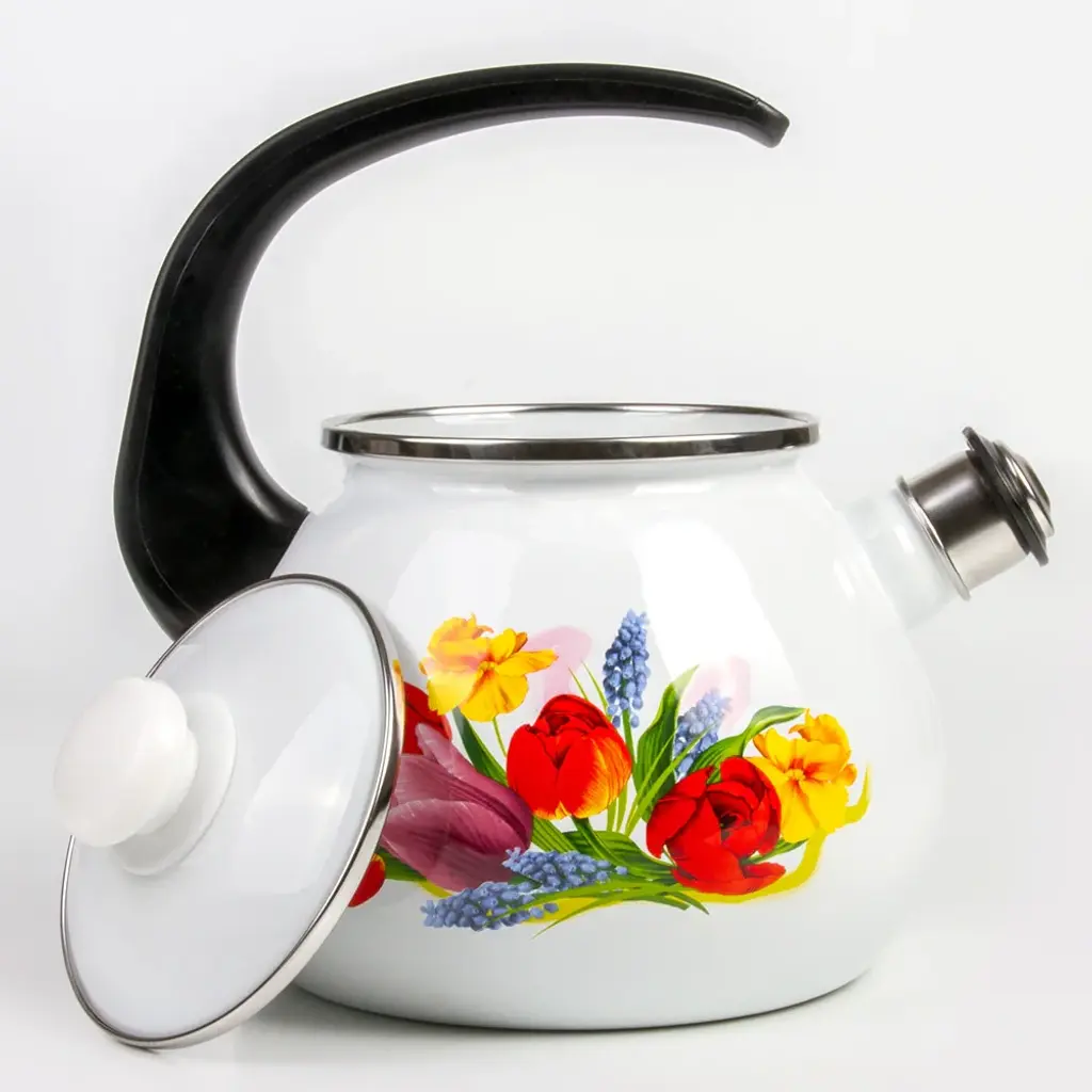Stp-Goods 2.7-Quart Spring Bouquet Enamel On Steel Whistle Tea Kettle - White