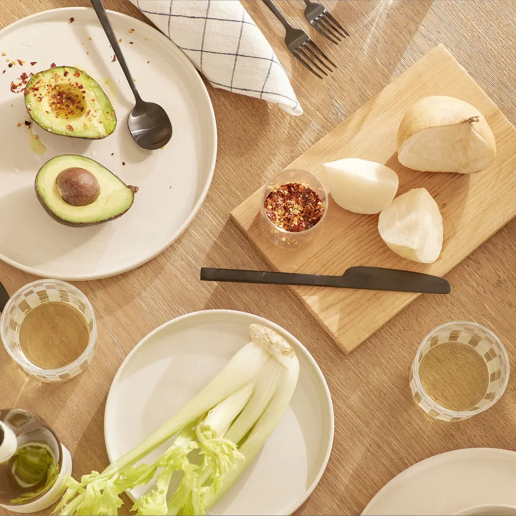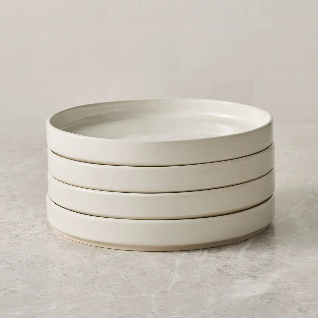 Durable stoneware built for daily use. Stacking design saves cabinet space. Sold in sets for dinner parties or daily meals alike. They're microwave and dishwasher safe.