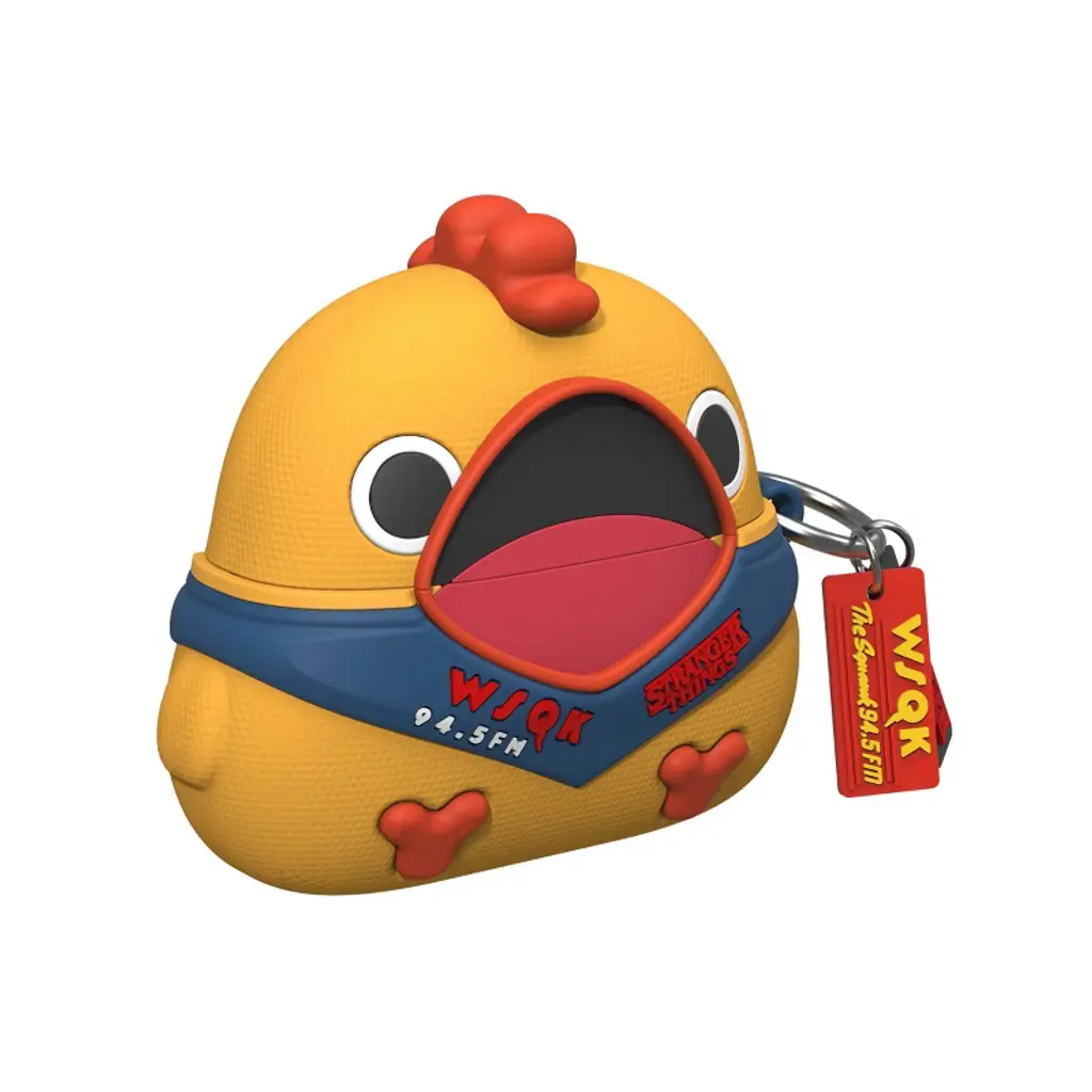 The Stranger Things AirPods Pro Gen 1/2 Case - Squawk Chicken brings serious style and Hawkins-level protection to your earbuds. Made with flexible silicone that guards against drops and scrapes, this case is perfect for dungeon crawlers, bikers, and anyone on the go. It fits both Gen 1 and 2 AirPods Pro® and comes with a built-in carabiner so you can clip it to your bag or pants. Whether you're jamming out at the arcade or heading into the Upside Down, this case is ready to roll.