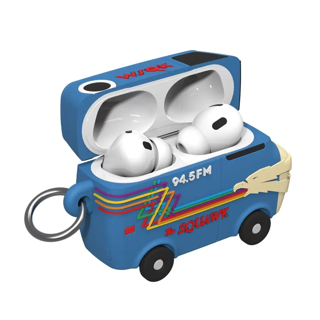 The Stranger Things AirPods Pro Gen 1/2 Case - WSQK Van brings serious style and Hawkins-level protection to your earbuds. Made with flexible silicone that guards against drops and scrapes, this case is perfect for dungeon crawlers, bikers, and anyone on the go. It fits both Gen 1 and 2 AirPods Pro® and comes with a built-in carabiner so you can clip it to your bag or pants. Whether you're jamming out at the arcade or heading into the Upside Down, this case is ready to roll.