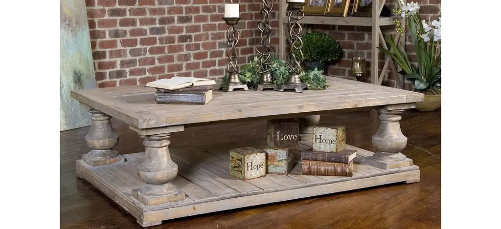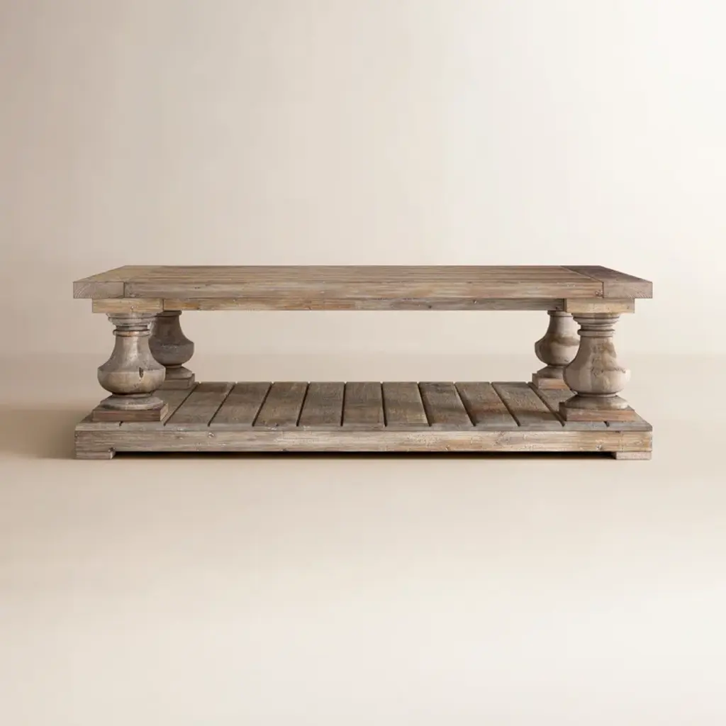 Solidly constructed of salvaged fir lumber and hand turned balusters. Sun faded and distressed patina is finished with a stony gray wash.