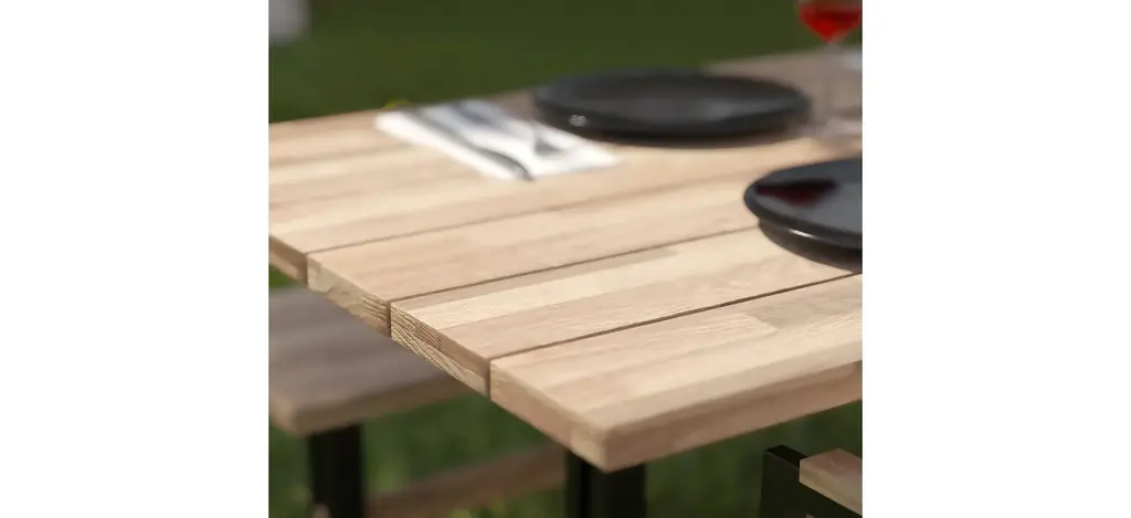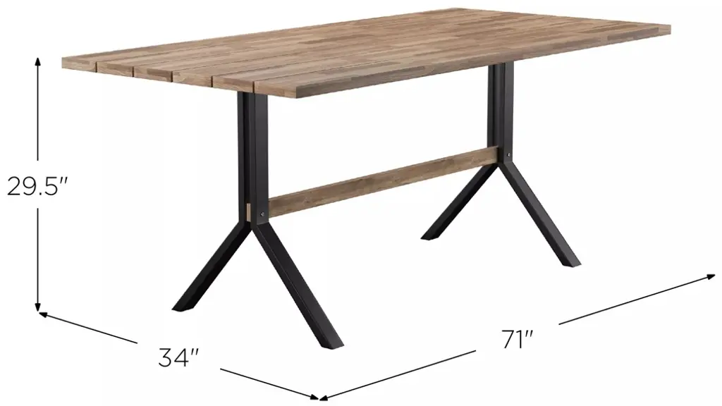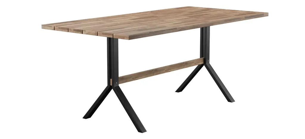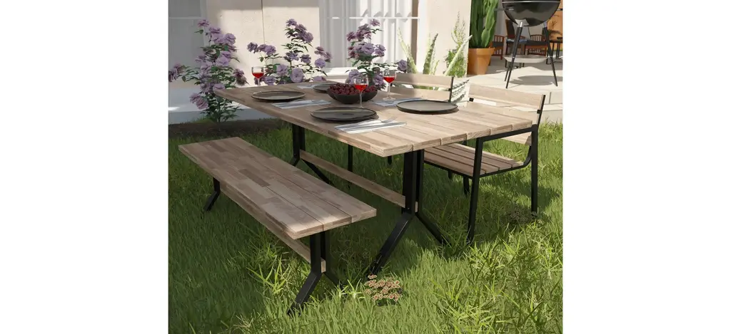Entertain like a pro with the Straton outdoor dining table. A slatted tabletop creates plenty of space for family dinners or spring gardening projects, while sturdy steel legs provide all-weather stability on your balcony or patio. The modern design features neutral colors and sleek lines, easily blending with your existing outdoor decor. Add style and function to your outdoor living space when you bring home this slatted dining table.
