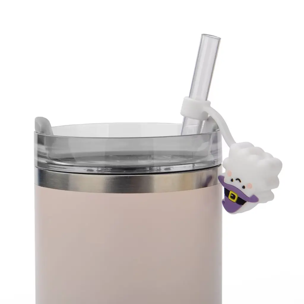 Add a touch of fun to your drinks with the Straw Toppers Ghost from Bullseye's Playground. Made from durable silicone, this white ghost-shaped topper is perfect for adding a playful element to your drinkware. Measuring 3 inches in height and 1.15 inches in width, it's a charming accessory for any occasion. Whether you're hosting a party or just enjoying a casual drink, this topper is sure to bring a smile.